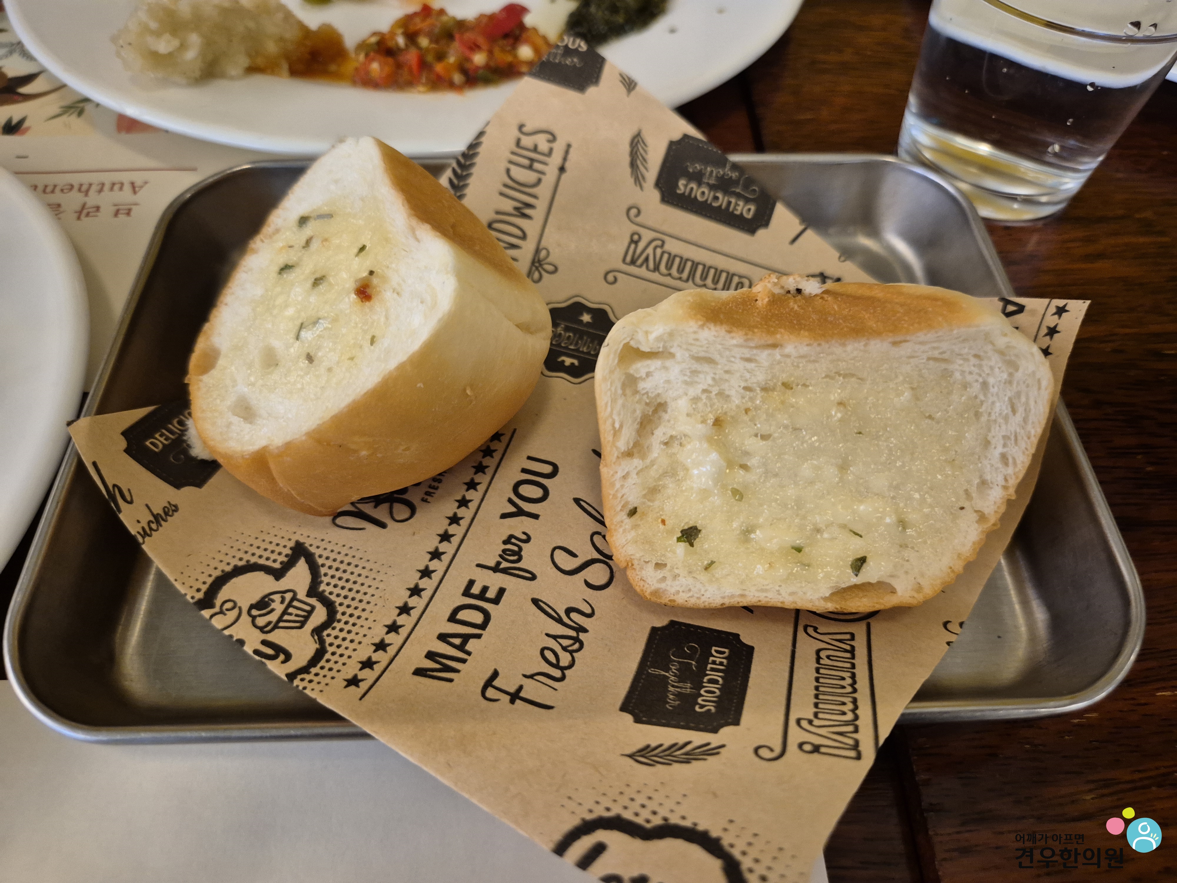 마늘빵으로 시작합니다.
