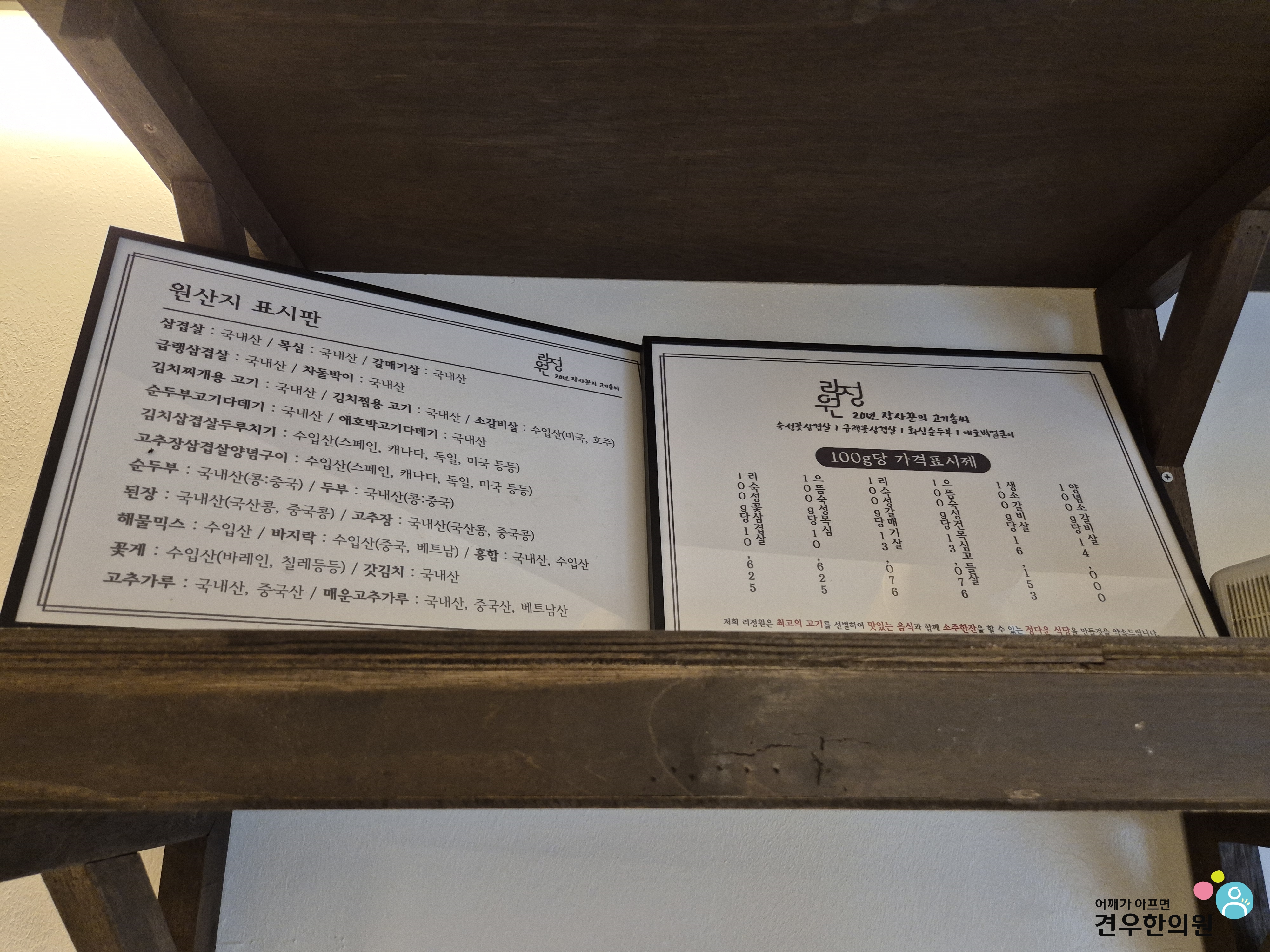 원산지 표시판, 메뉴, 가격