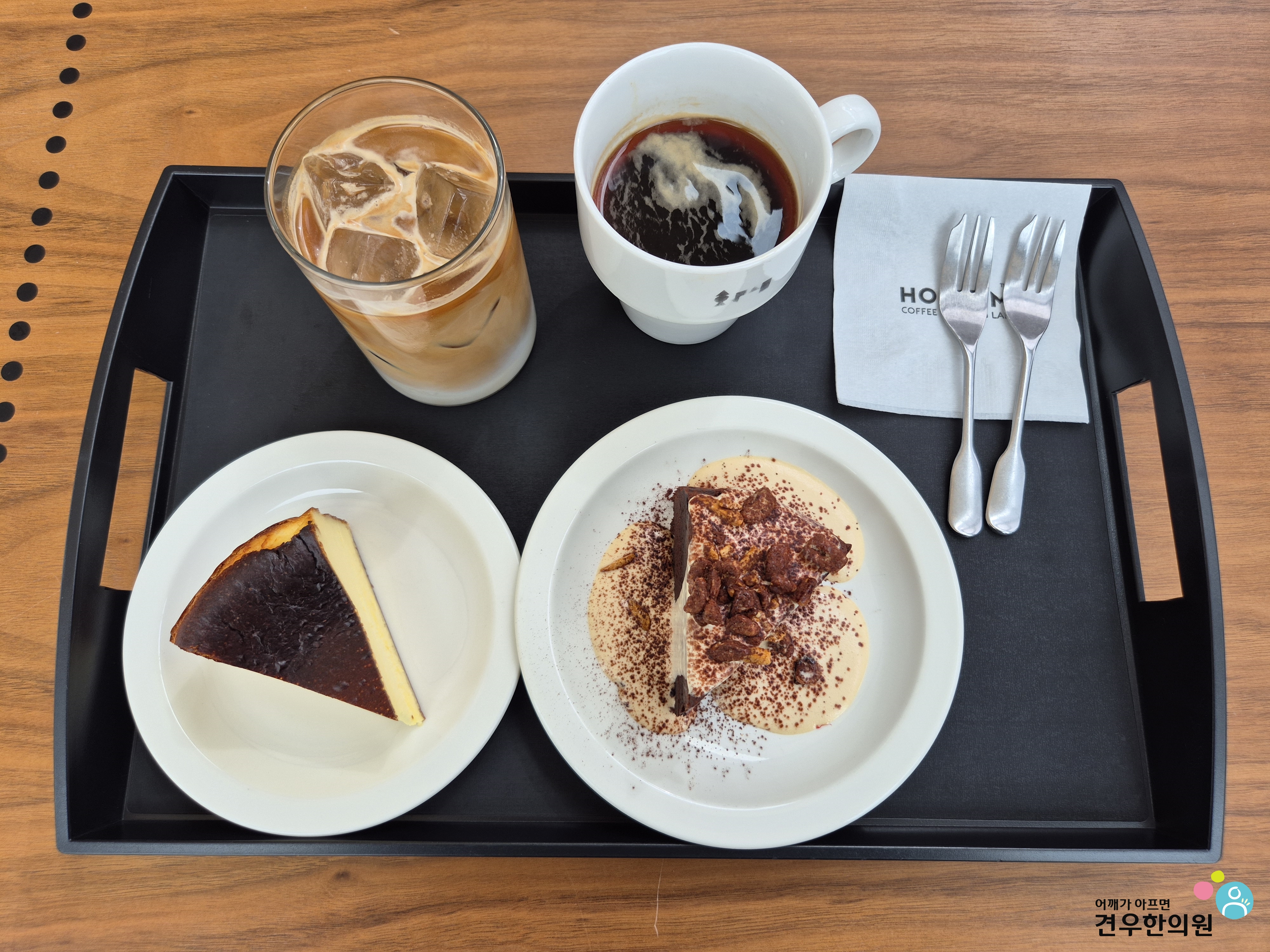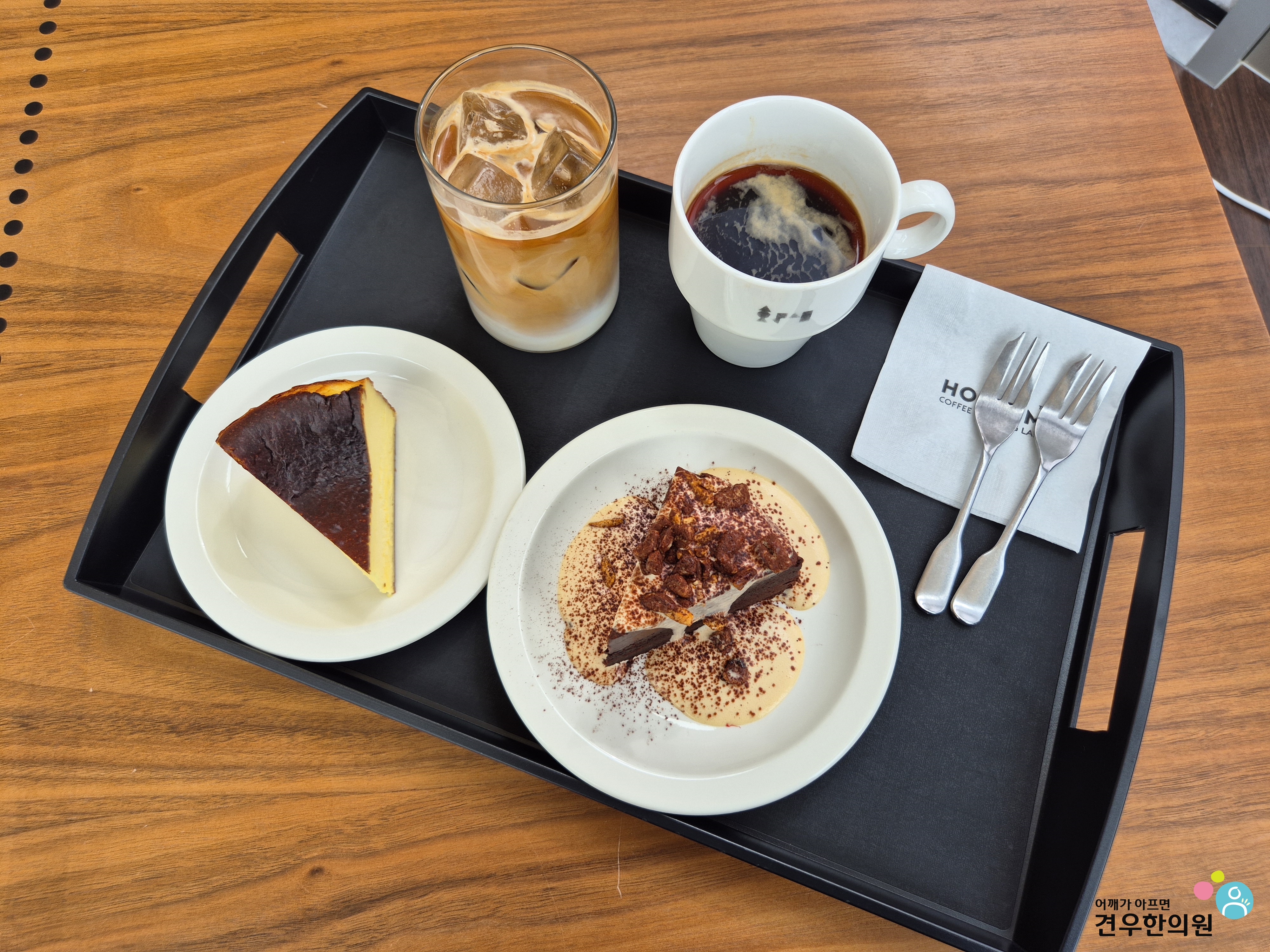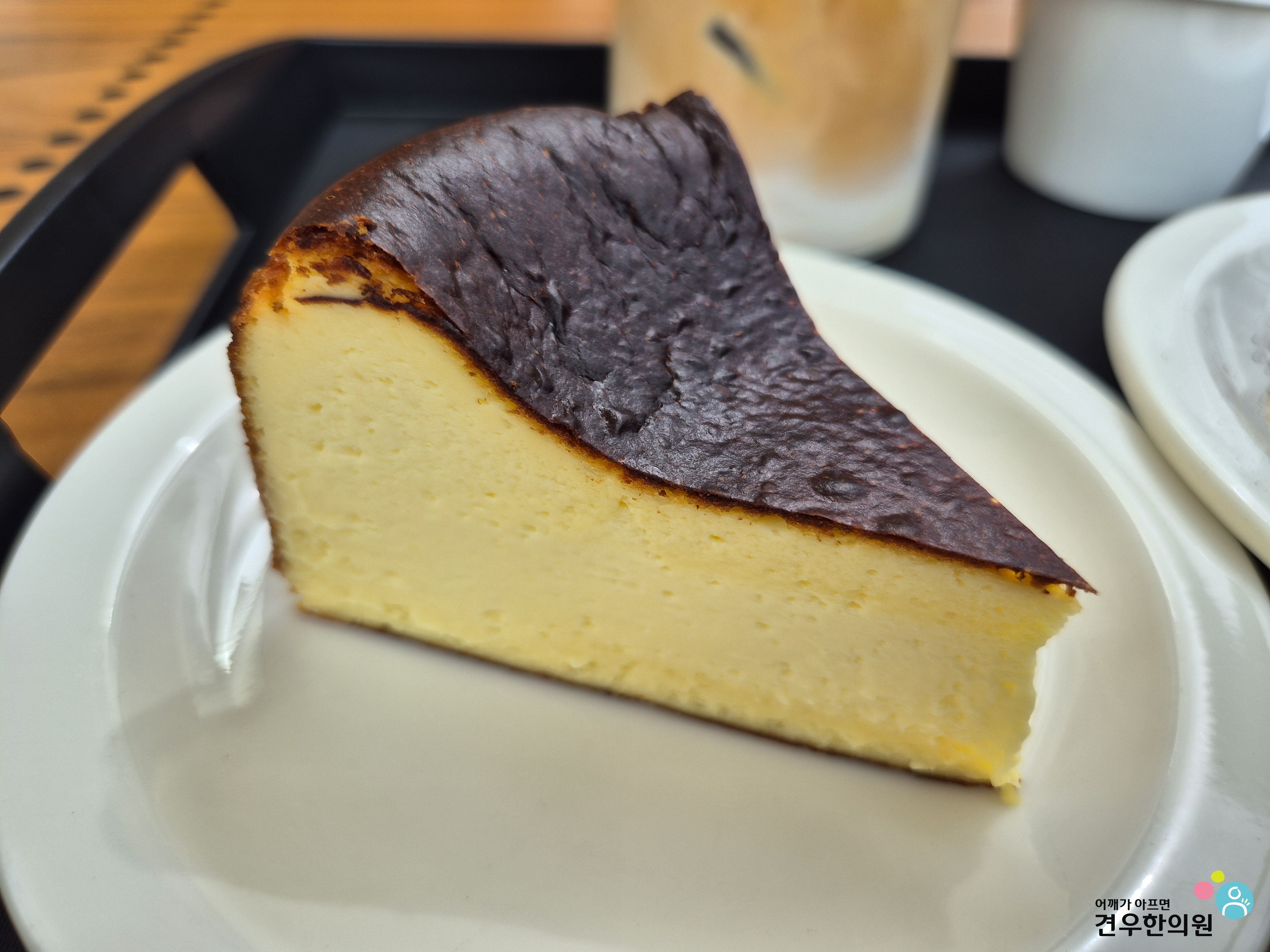 시원한 라테, 바스크 치즈케이크,