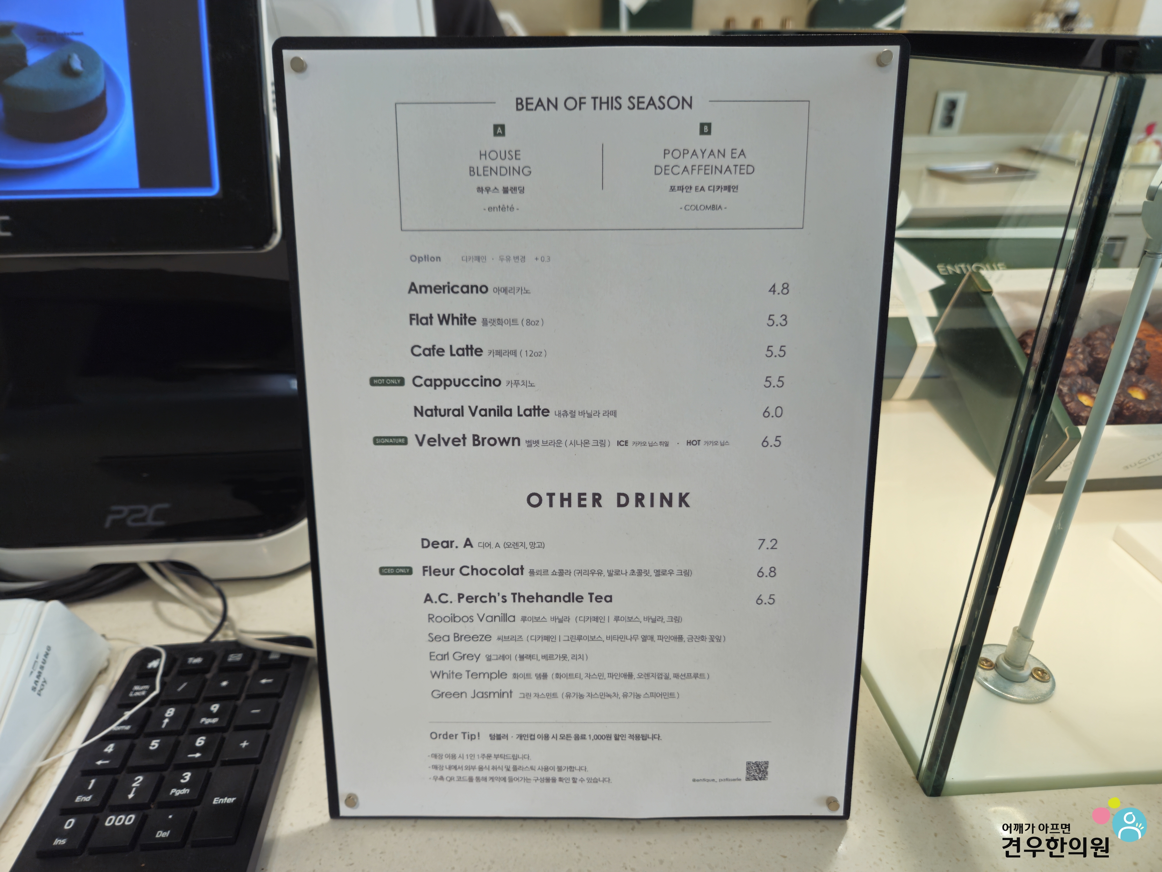 강남카페 앙띠크 메뉴, 가격
