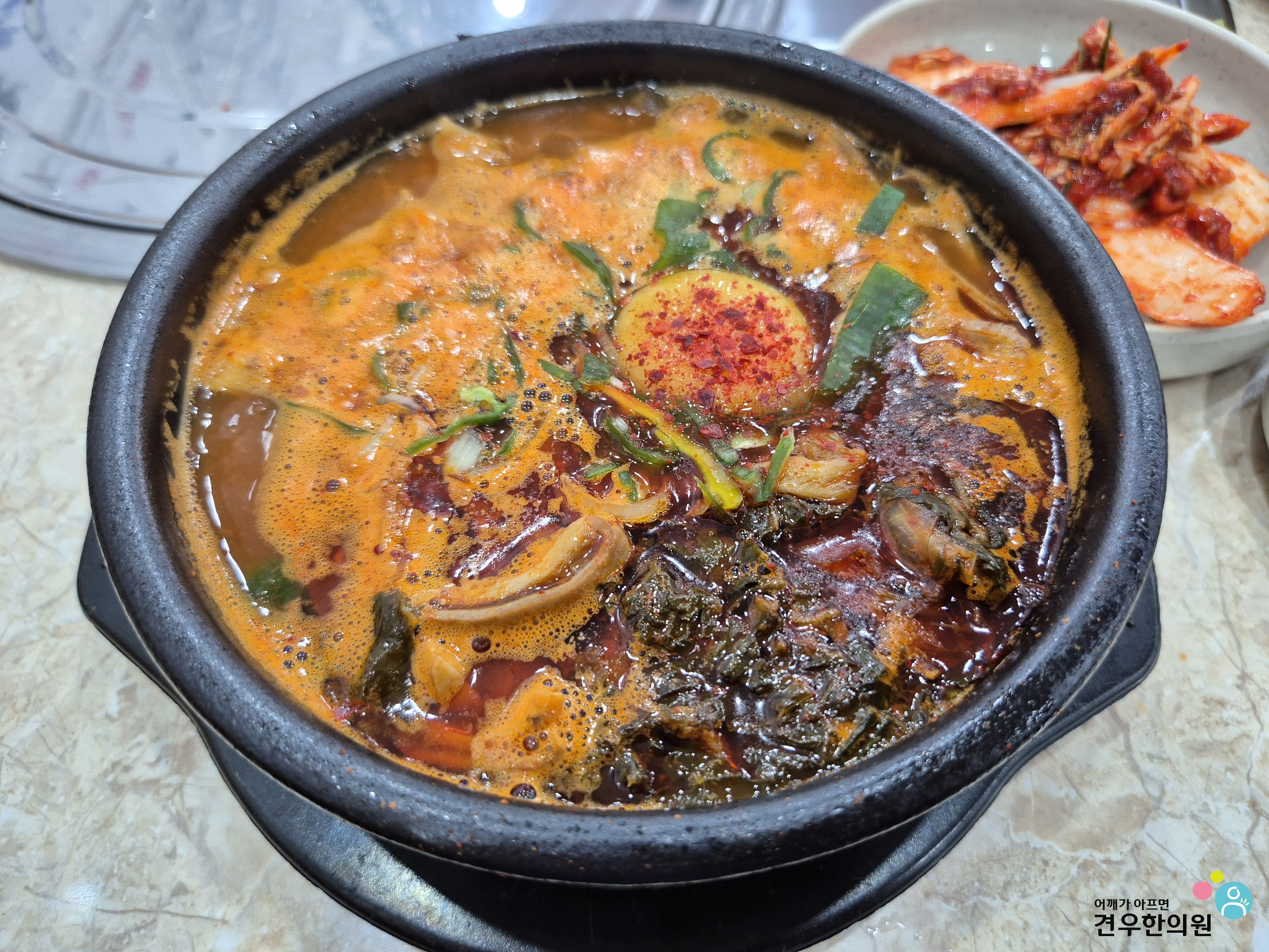 계란 노른자로 맛을 낸 해장국이라