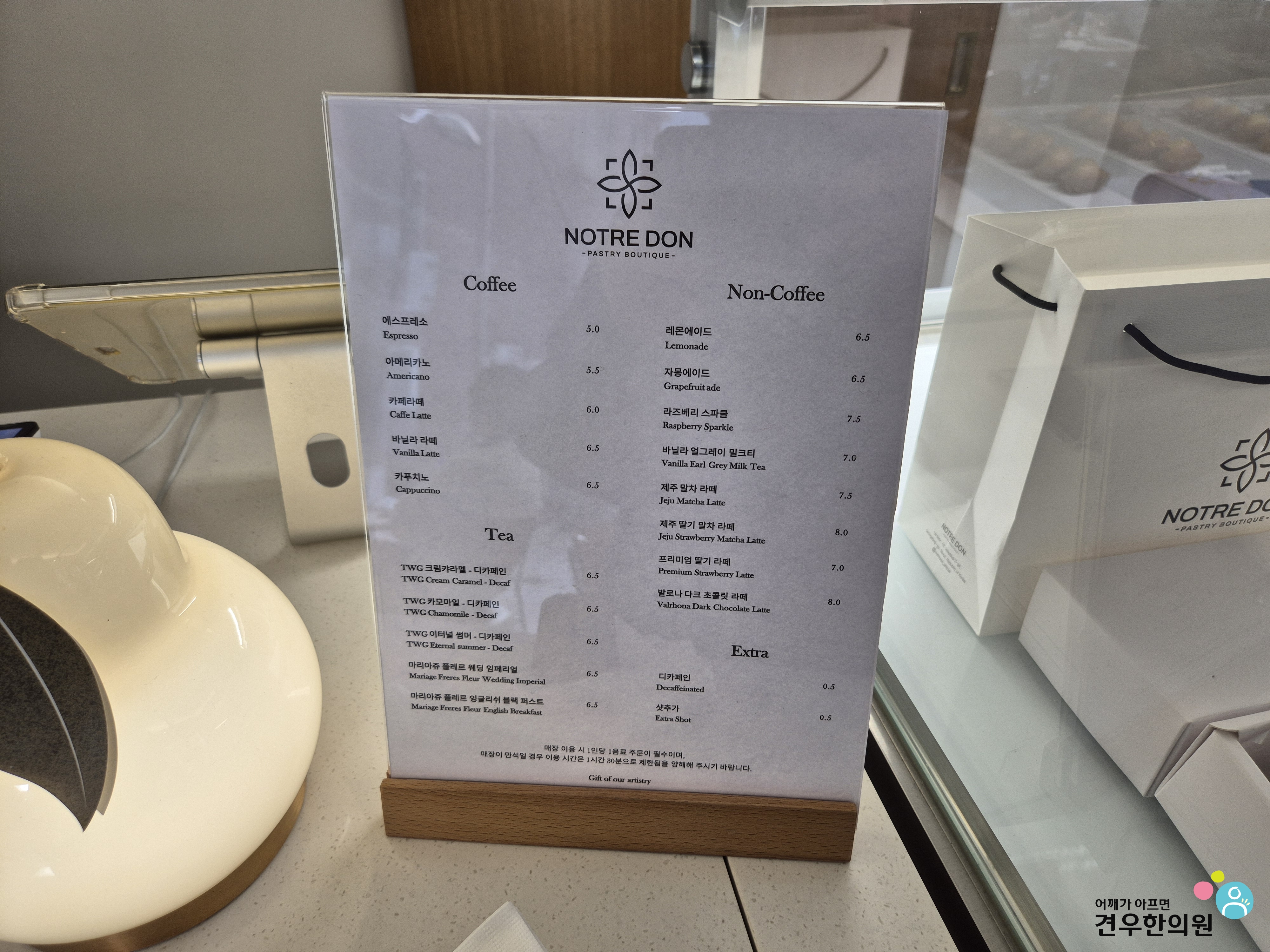 천하제빵 디저트 노틀던 메뉴판을 살펴보니 커피와 차, 그리고 논커피 음료들이 준비되어 있었어요.