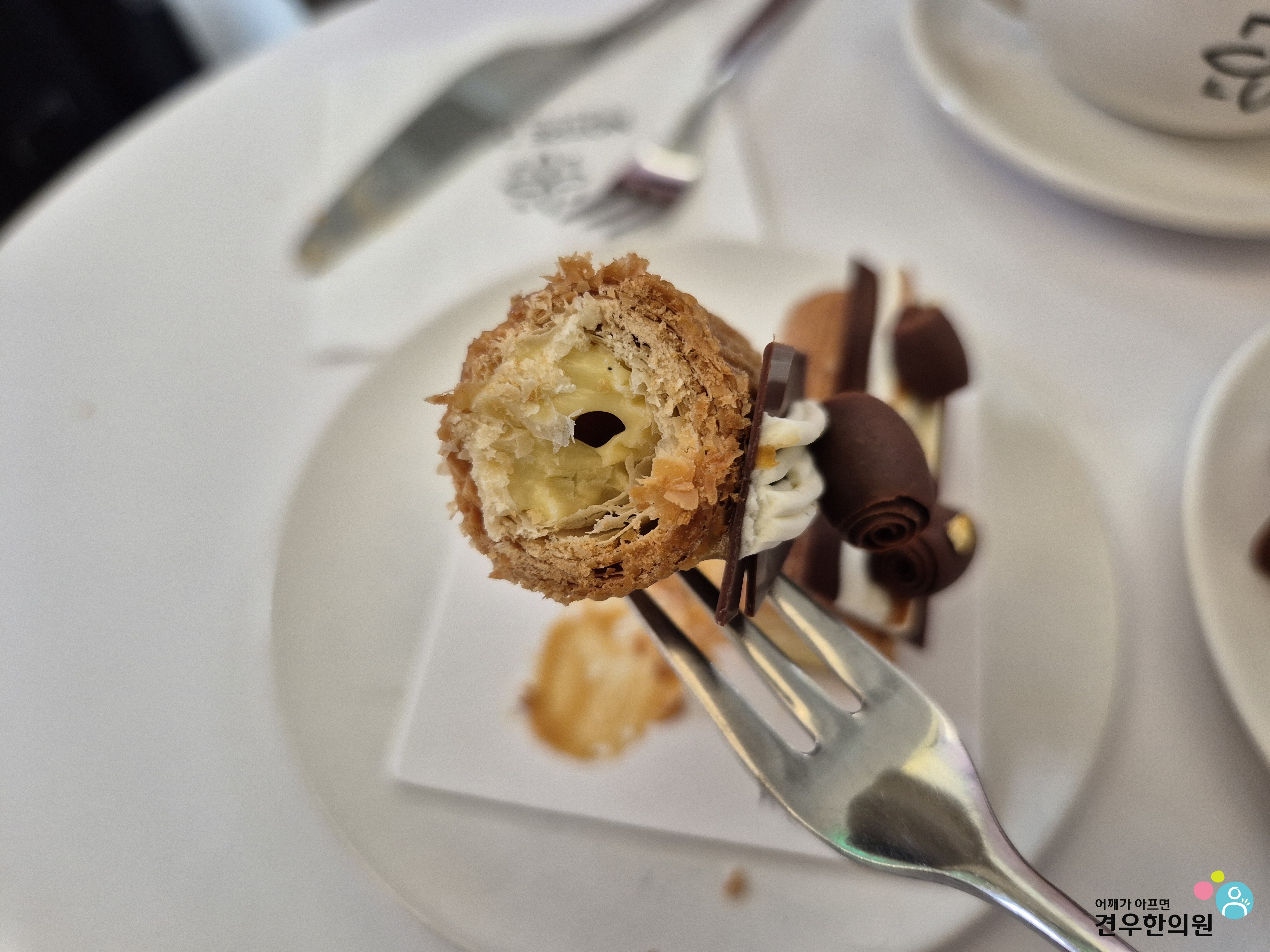맛: 겹겹이 쌓인 바삭한 식감 사이에 찐득한 솔티 카라멜의 감칠맛과 부드러운 바닐라 크림이 만나 '단짠 바삭'의 정석을 보여줍니다.