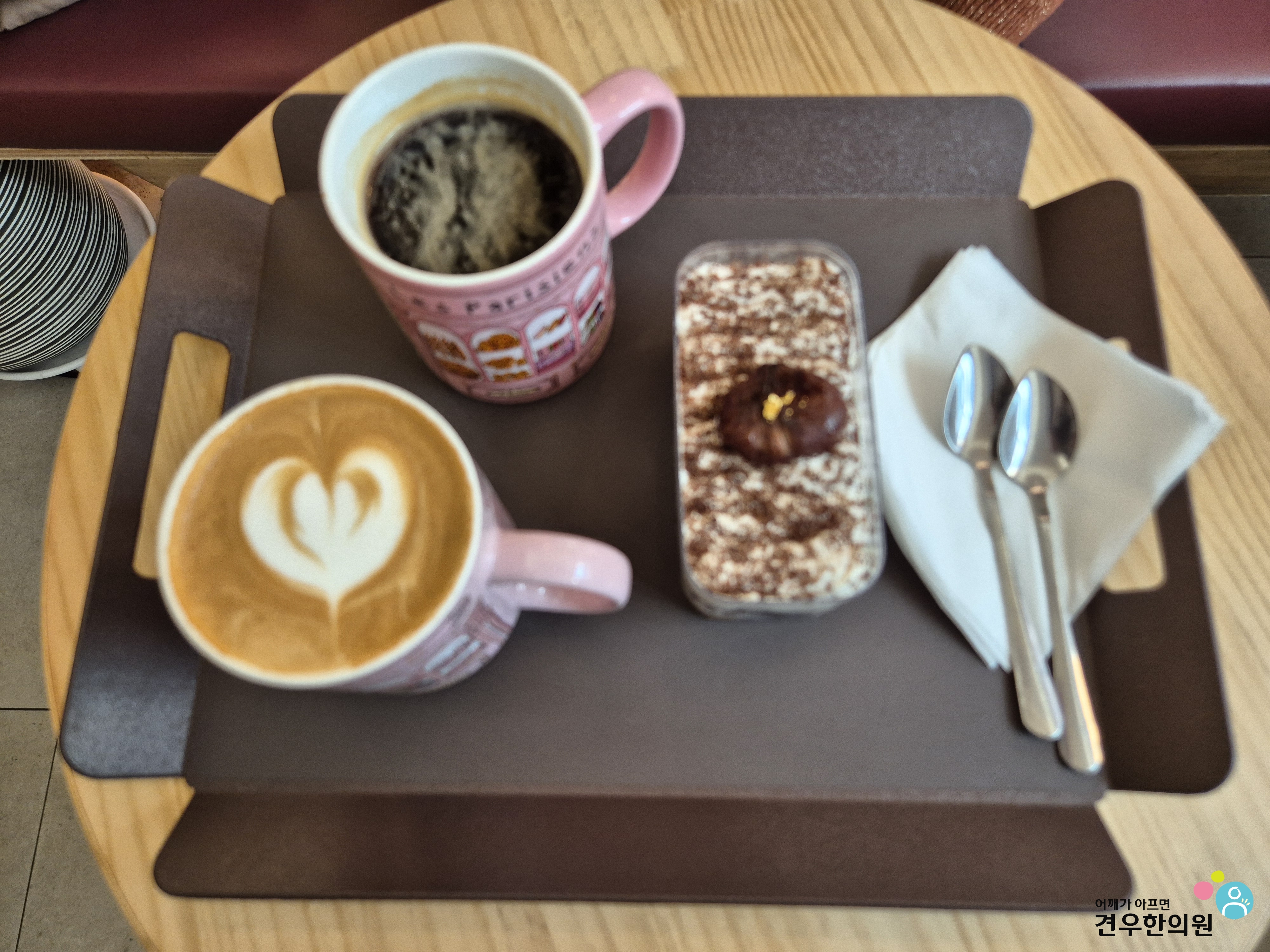레빠리지엥에서 아메리카노와 카페라떼, 그리고 오늘 가장 기대했던 **'보뉘밤 티라미수'**를 선택했어요.