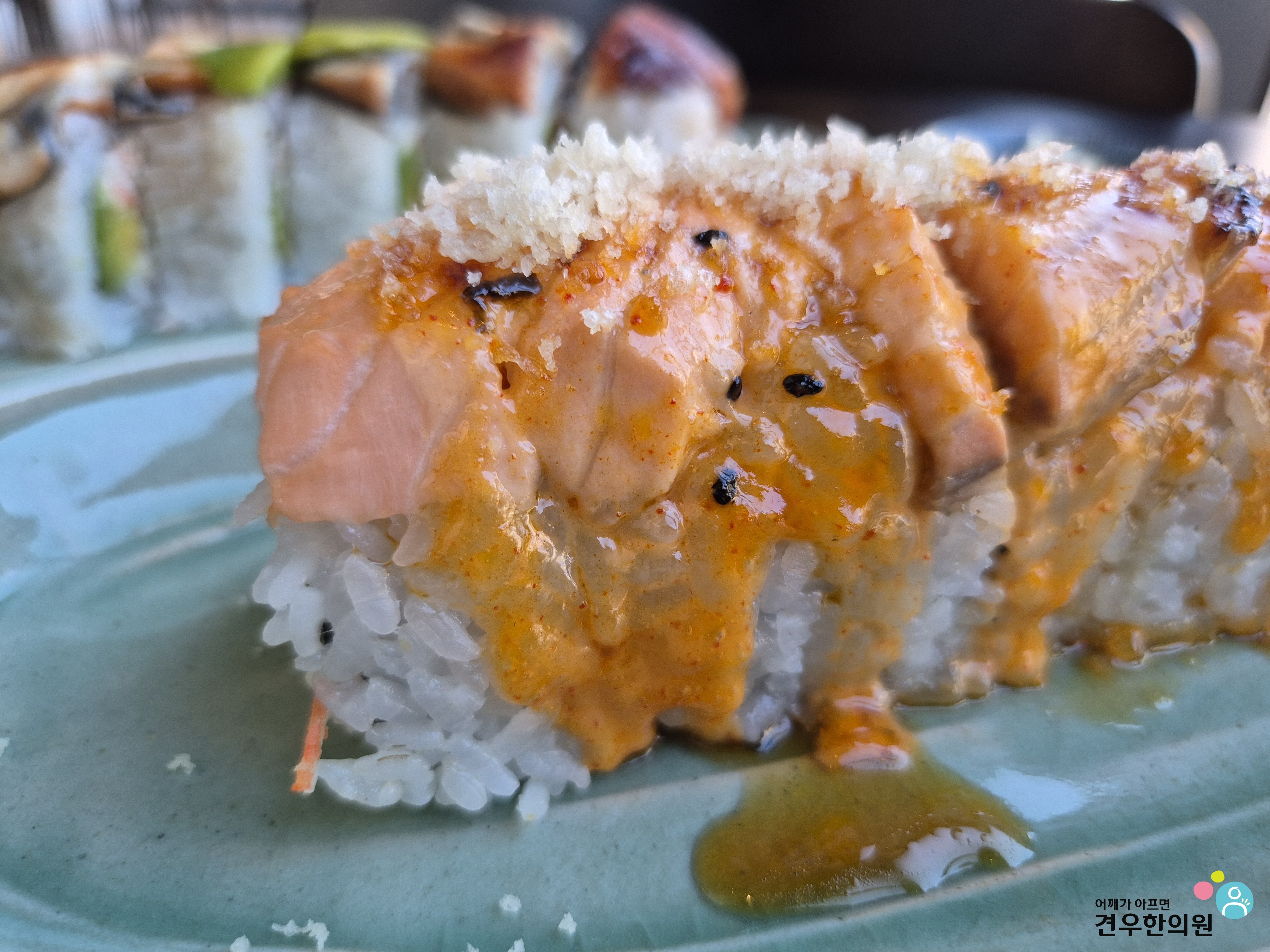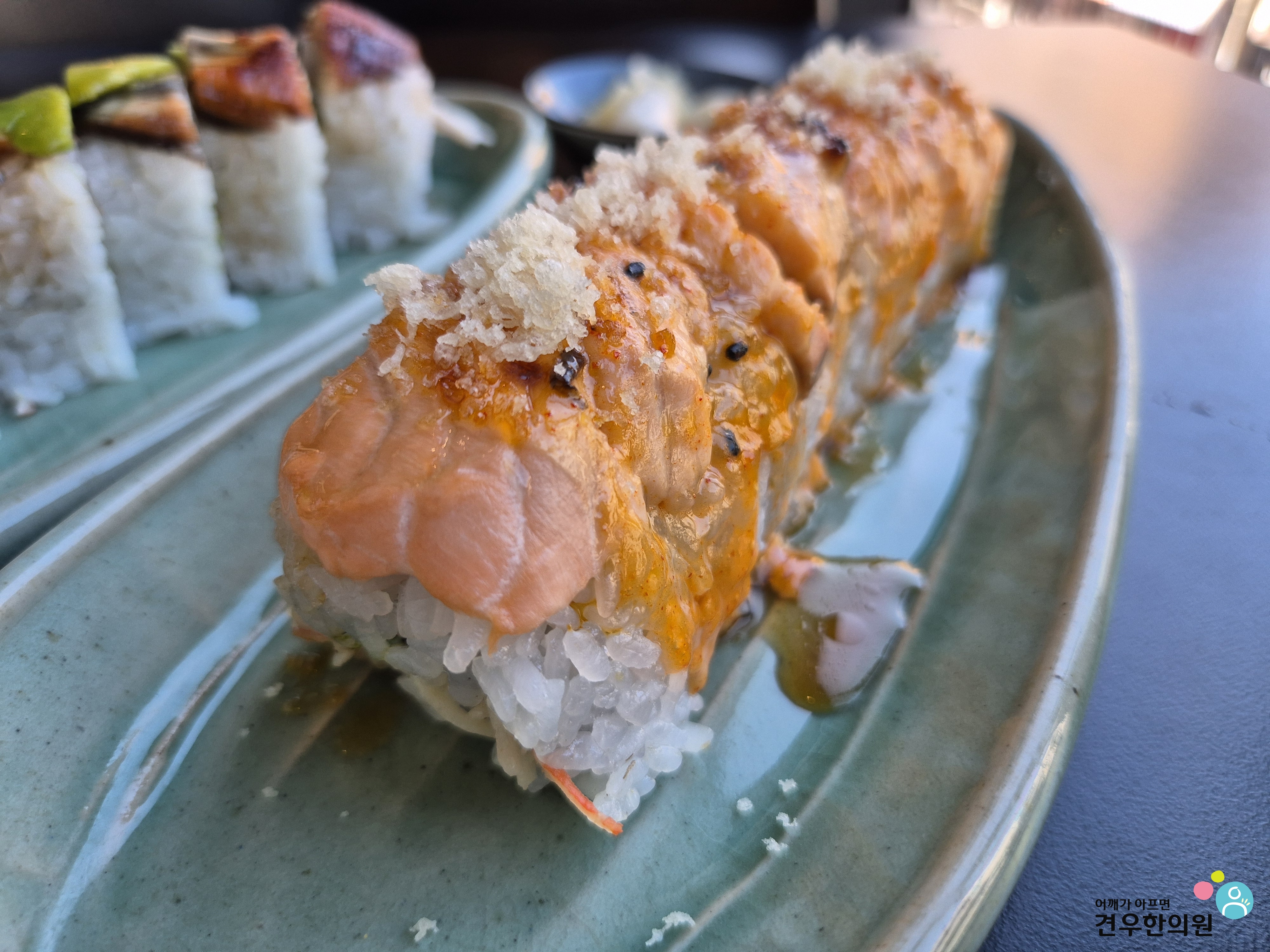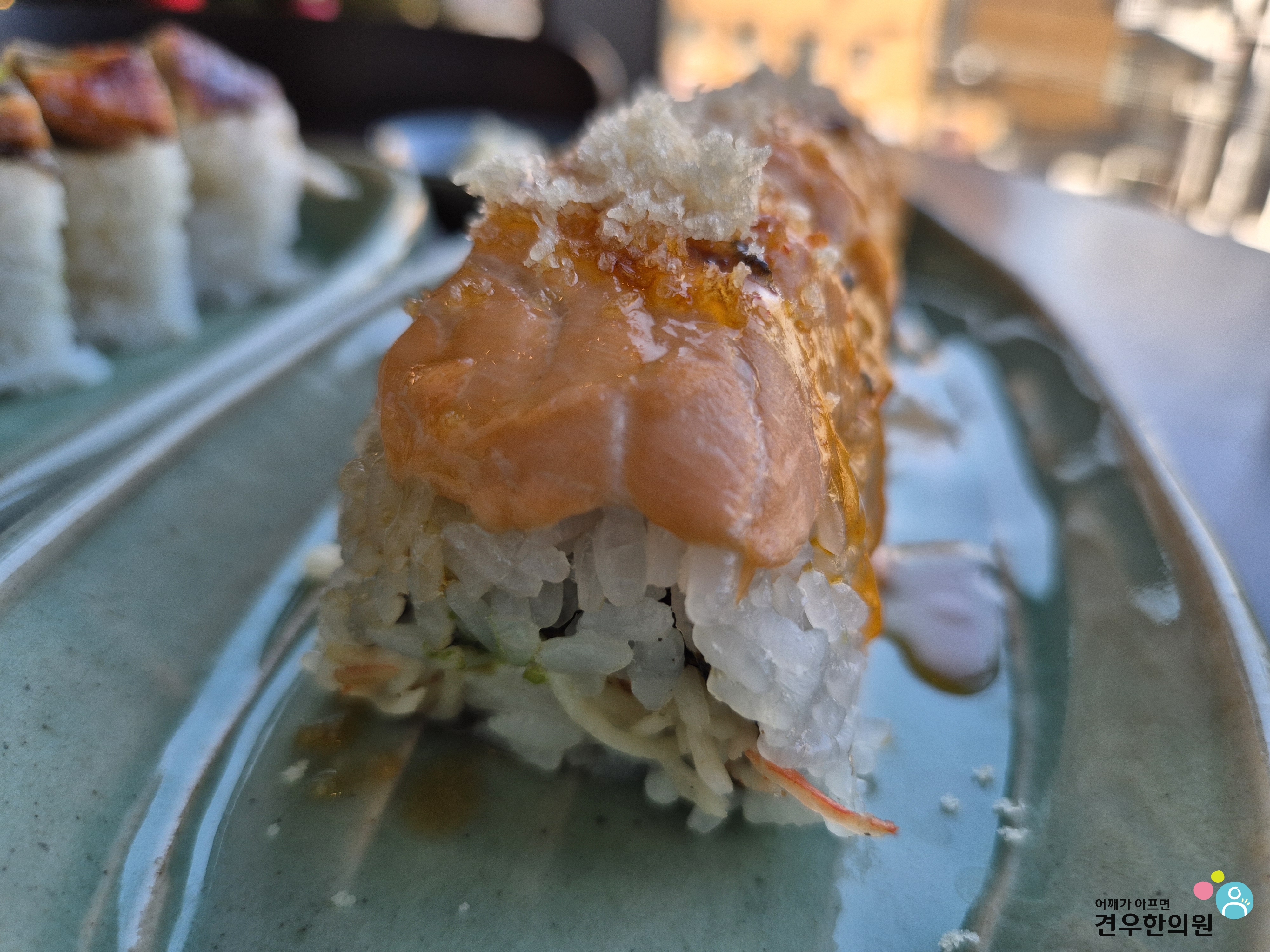 생활의달인 용산구 연어롤이 부드러운 매력이라면, 스시노바 드래곤롤은 묵직하고 힘 있는 맛을 합니다.