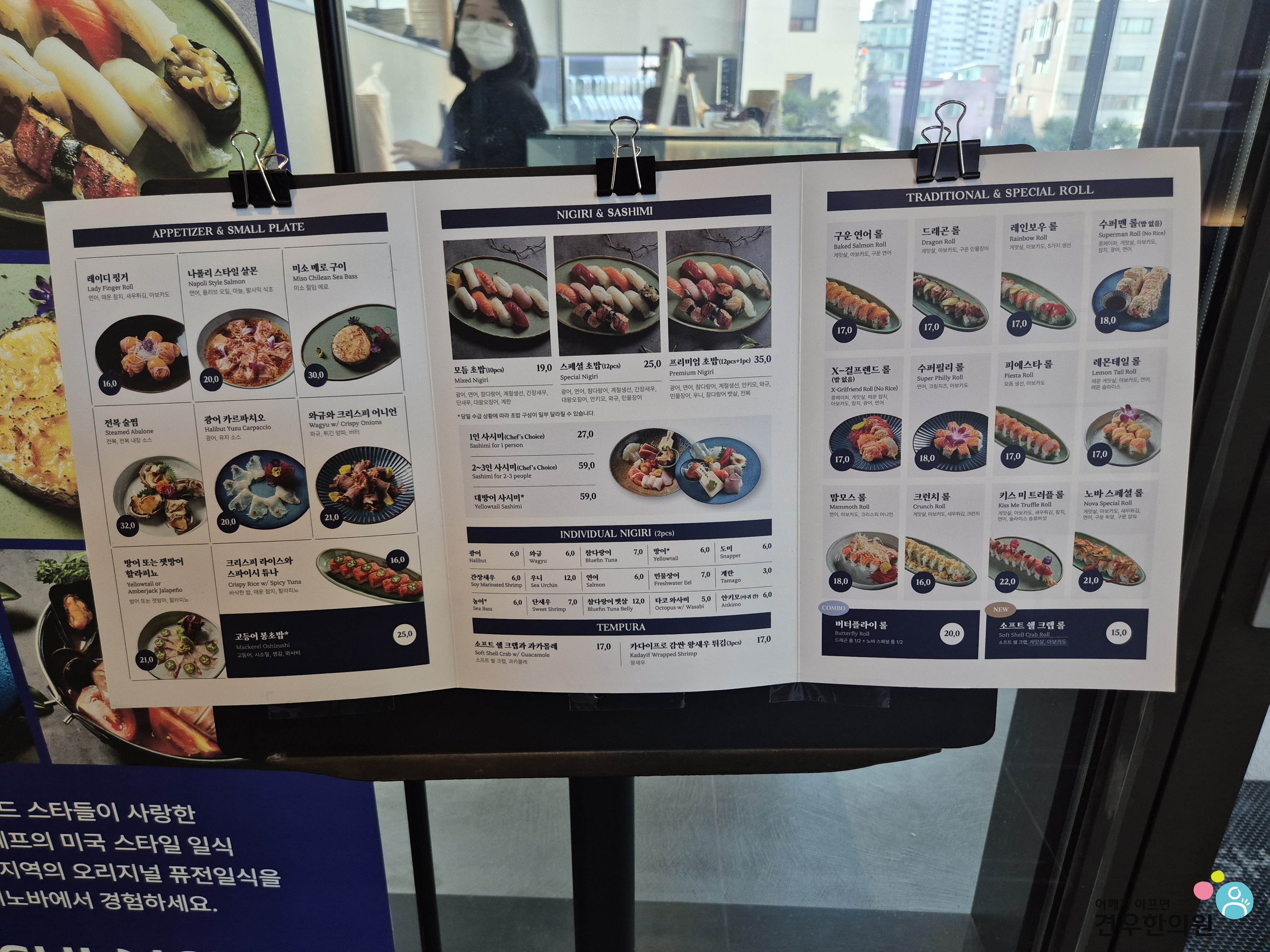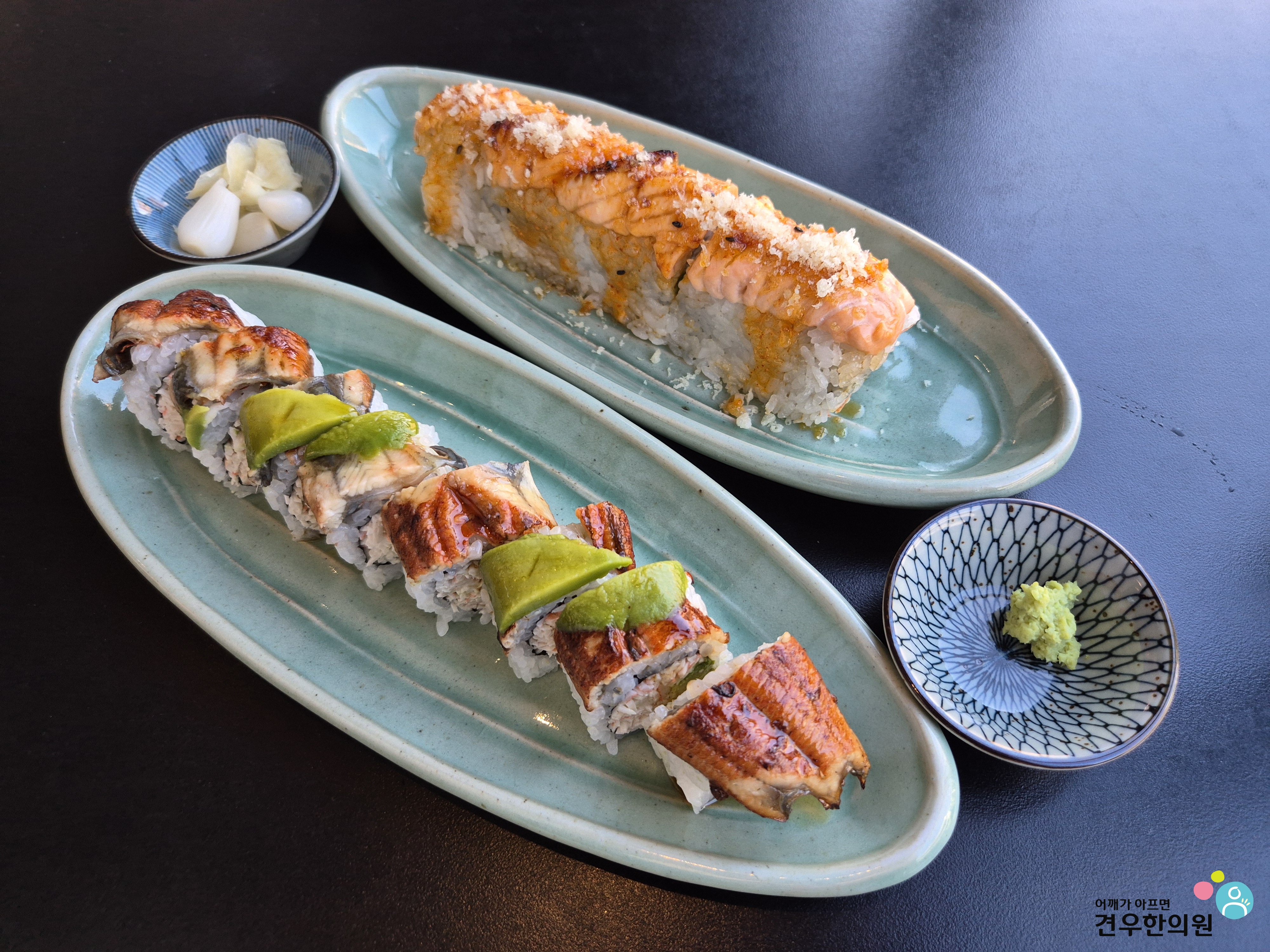 다양한 메뉴 중에서도 제가 오늘 집중적으로 소개해 드릴 메뉴는 스시노바의 양대 산맥, 구운 연어롤과 드래곤롤입니다.