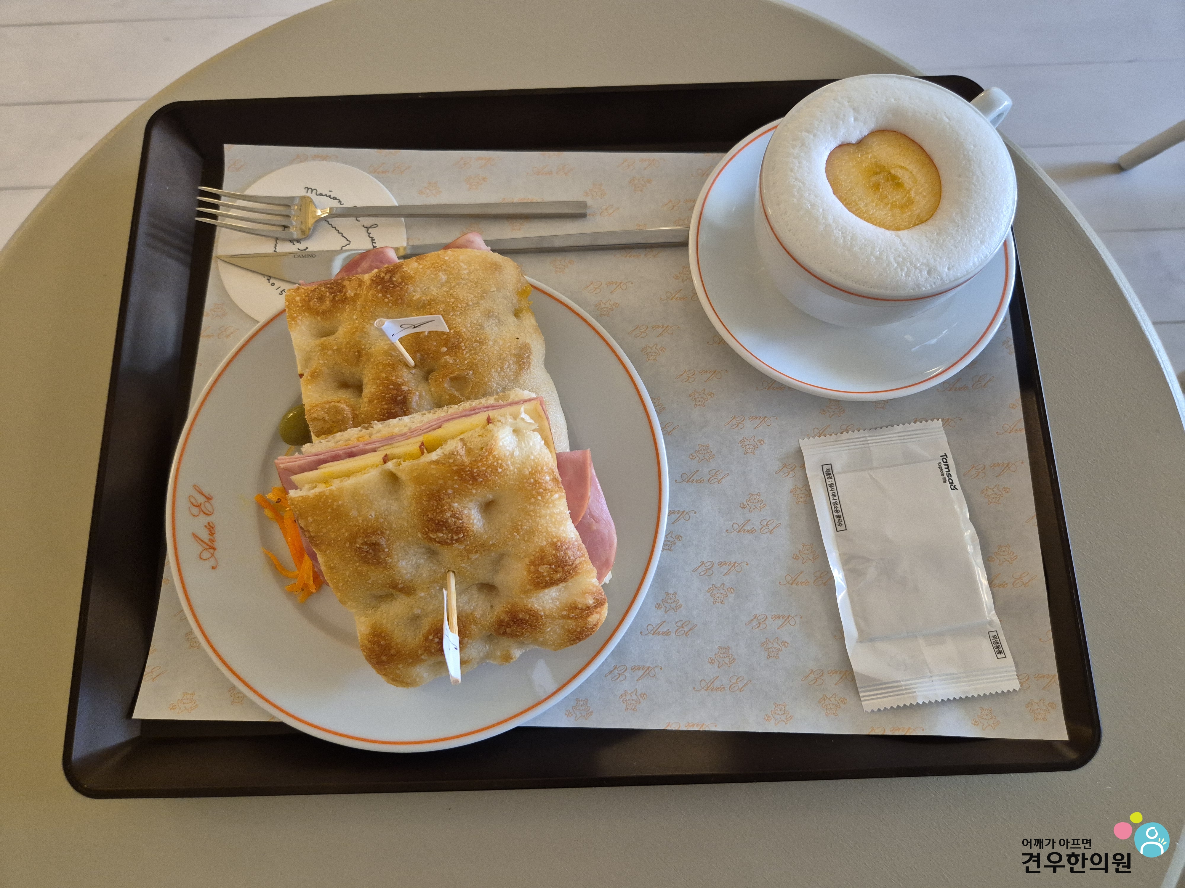 숙대카페 샌드위치의 짭짤함과 라떼의 부드러움은 의외로 찰떡궁합입니다.