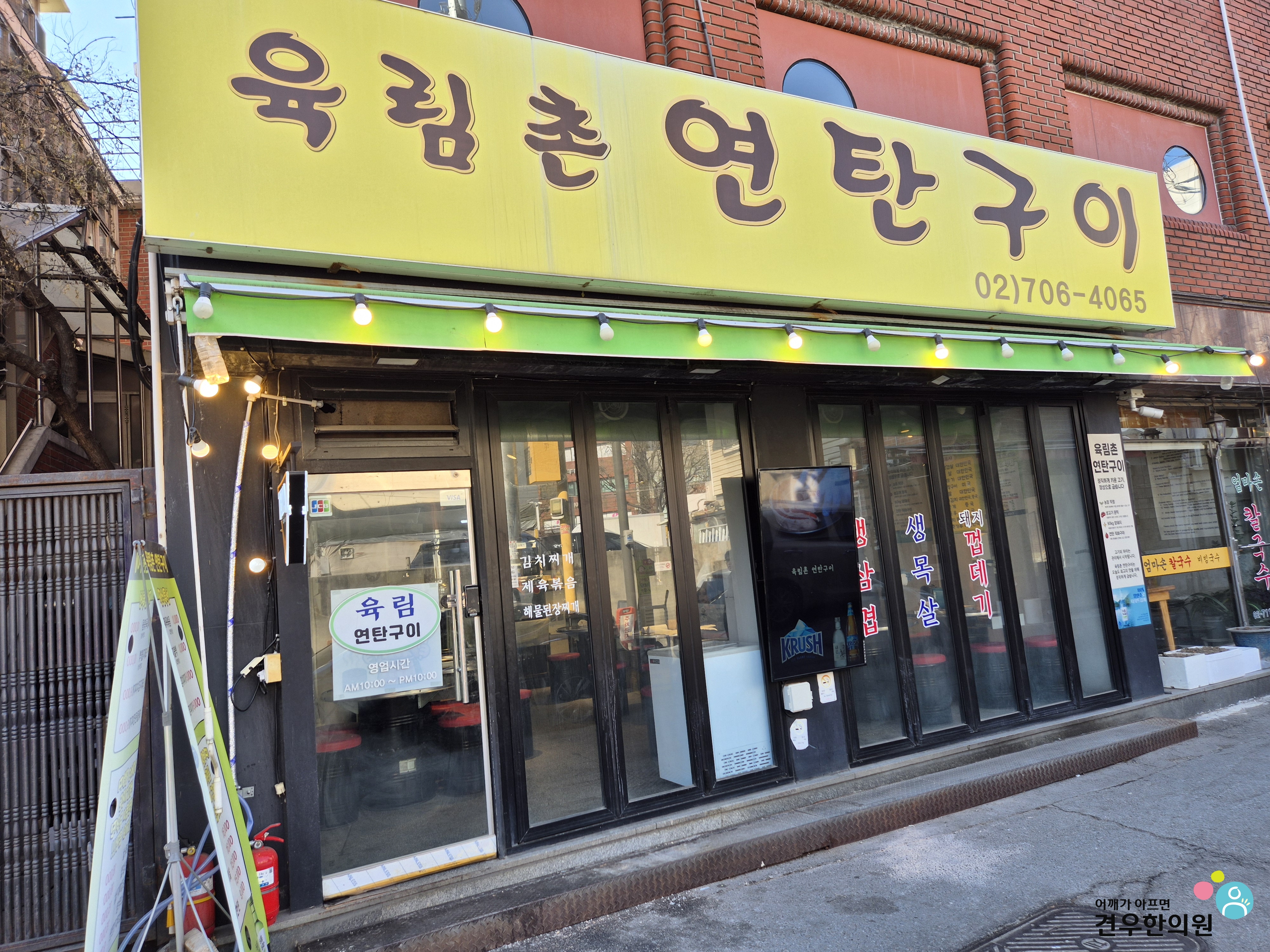바로 경의선 숲길을 걷다 보면 자연스럽게 마주하게 되는 곳, **'육림촌연탄구이'**입니다.