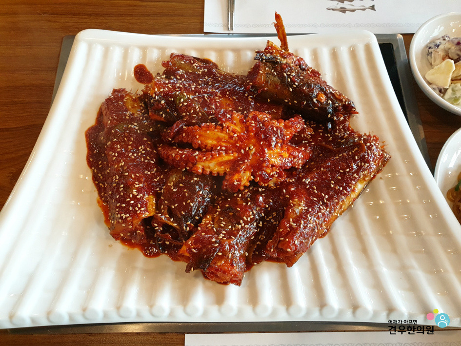 매콤한 생선은 따끈한 밥이 정답입니다.