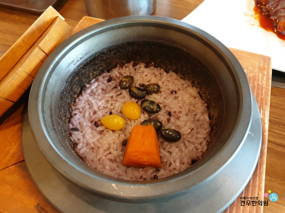 당근, 은행 등이 올려져 나오는 영양돌솥밥