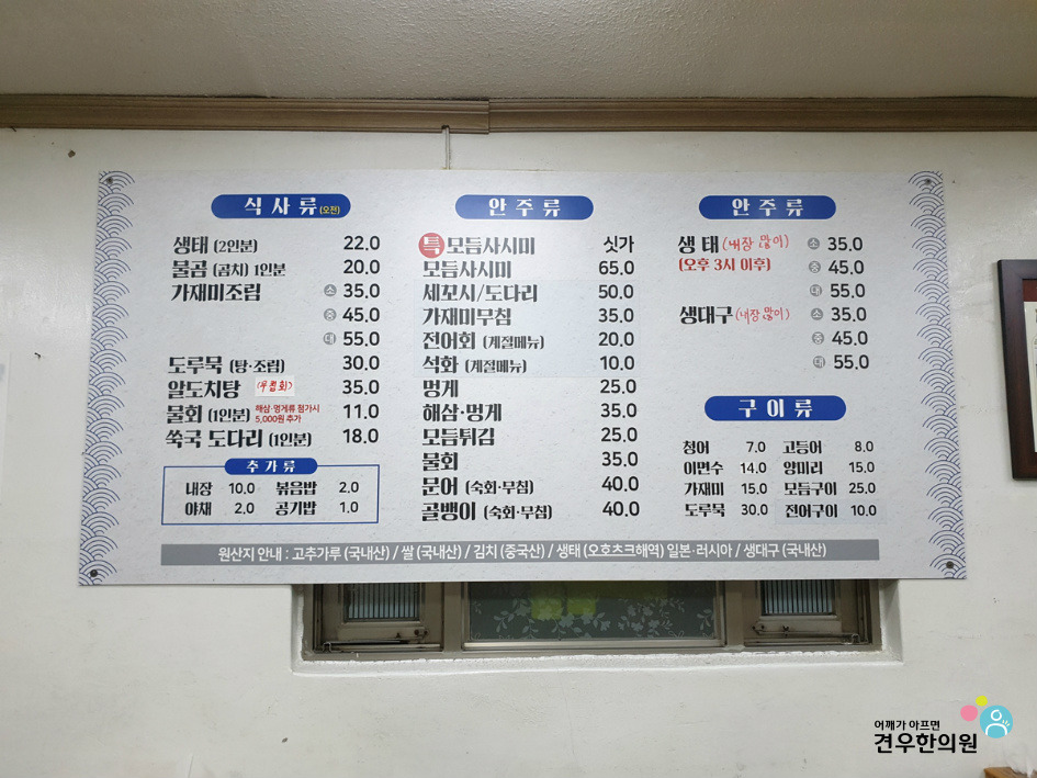 북창동 속초생태집 메뉴, 가격