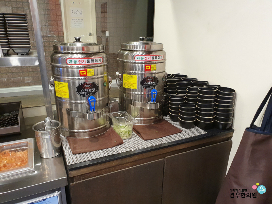 국과 앞치마도 셀프입니다.