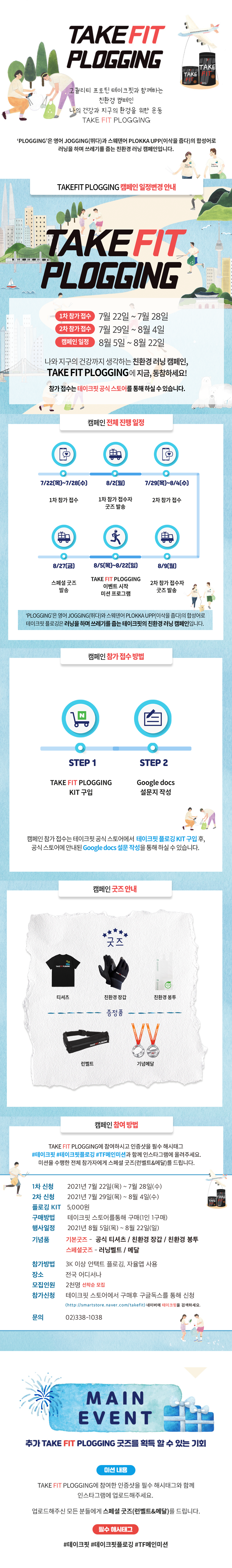 뛰면서 하는 친환경 캠페인 '테이크핏 플로깅' 신청하세요. 작성자테이크핏플로깅|작성시간21.07.30|조회수46 목록 댓글 0 글자크기 작게가 글자크기 크게가 다음검색 현재 게시글 추가 기능 열기 북마크 공유하기 신고 센터로 신고 댓글 댓글 0 댓글쓰기 답글쓰기 댓글 리스트