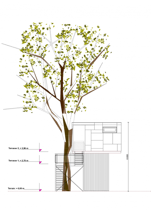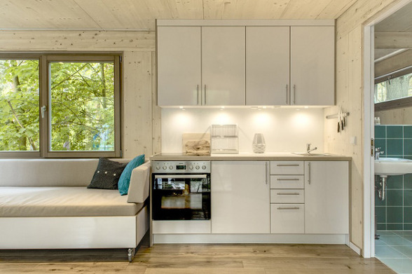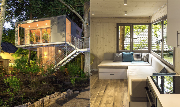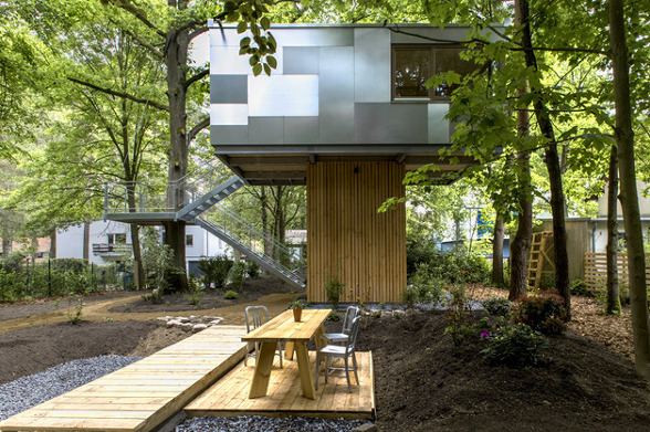 독일 베를린의 숲속에 지어진 트리하우스로 나무위에서의 하룻밤을 위해서 지어진 9평 정도의 작은 펜션입니다 숲속에 지어지긴 했지만 현대적인 인테리어가 큰 나무와 주변의 숲과 어울려 편안함을 줍니다.