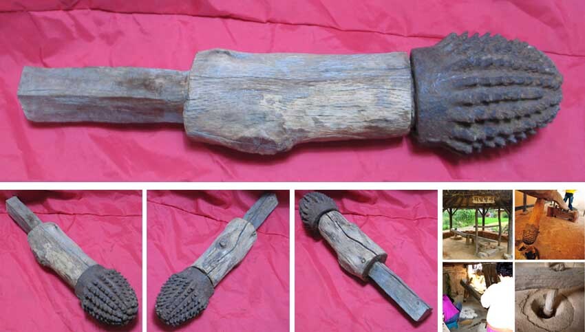 고향의 사라진 나무로만든 디딜 방아공이