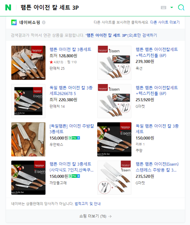 햄튼 아이전 칼 세트 3종 (새상품 , AS 가능)