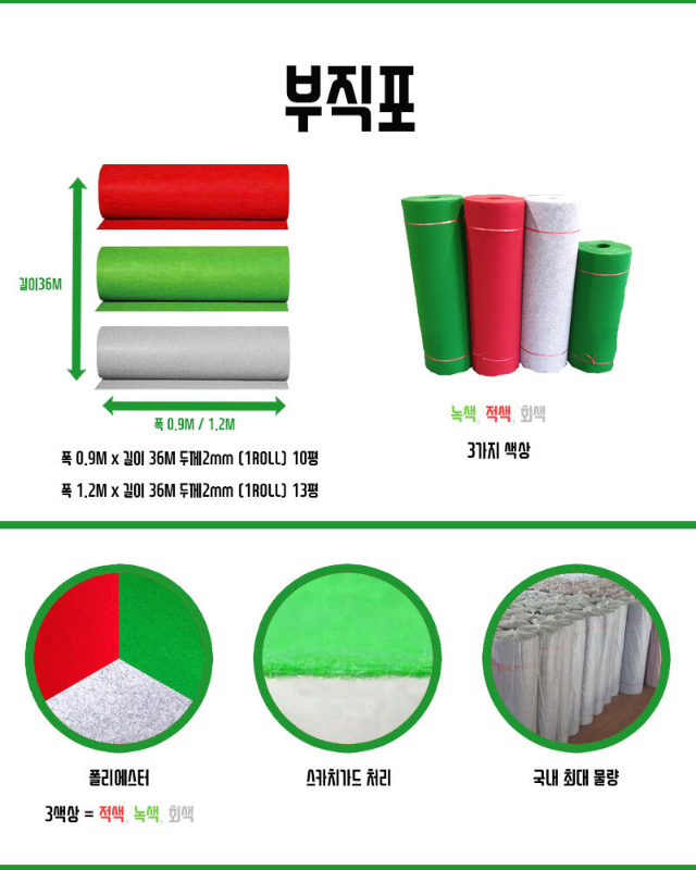 부직포 / 쿠션롤(코일) / 롤카페트 / 튜브매트 / 체육관매트 / 잔디보호매트