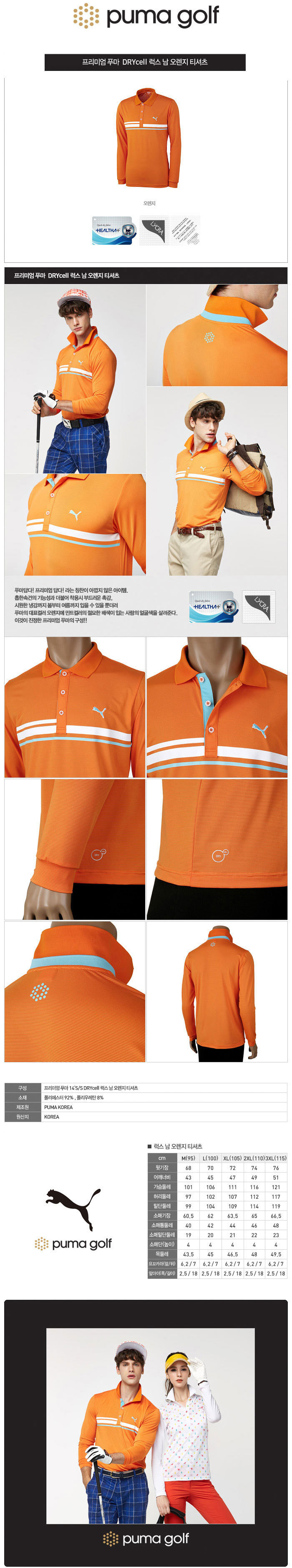 PUMA 프리미엄 남성 긴팔 골프티셔츠 1종(오렌지) 277장 덤핑 정리합니다.