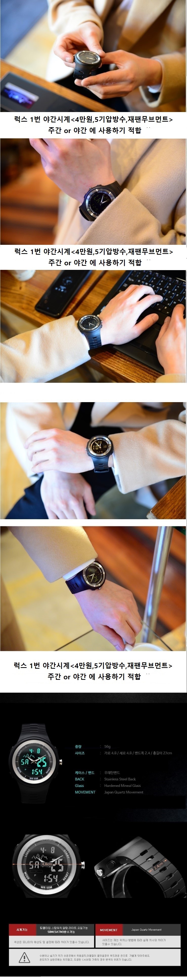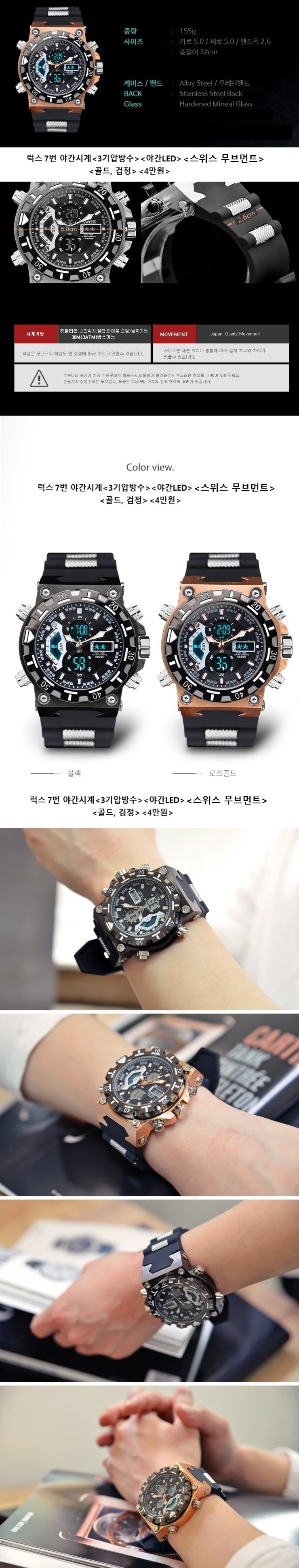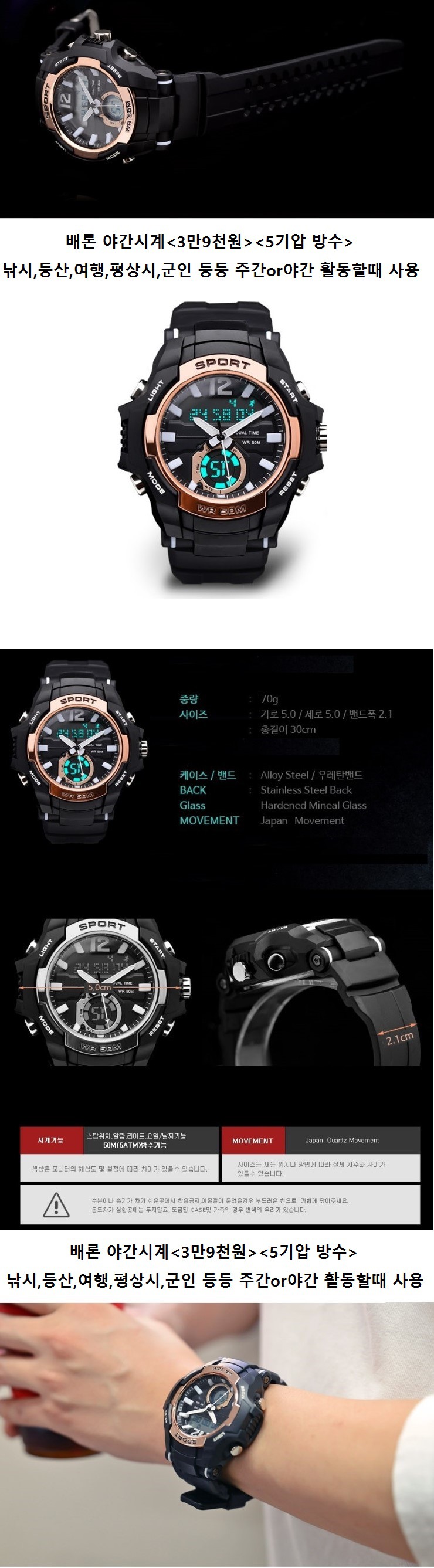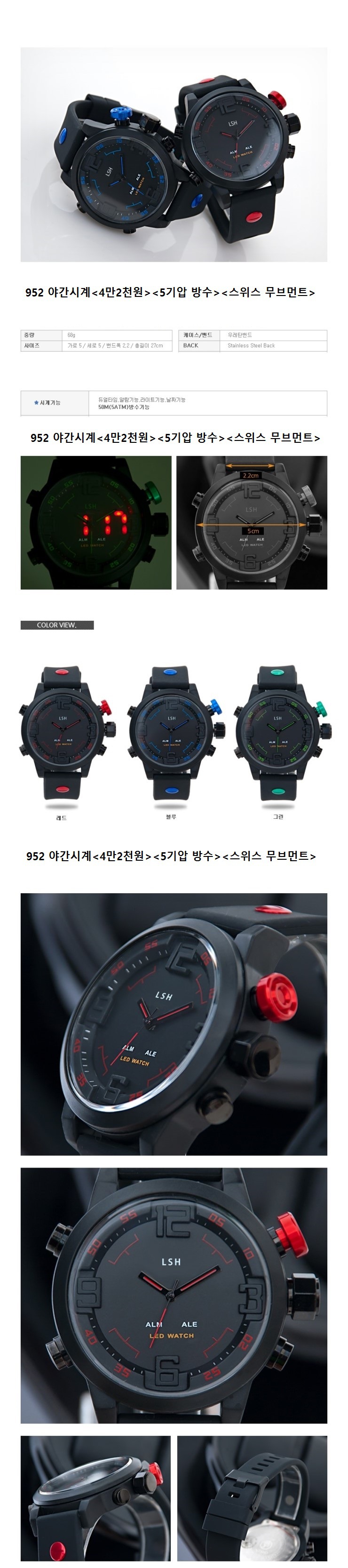 특징: 우레탄, 5기압 방수, 야간LED 사용