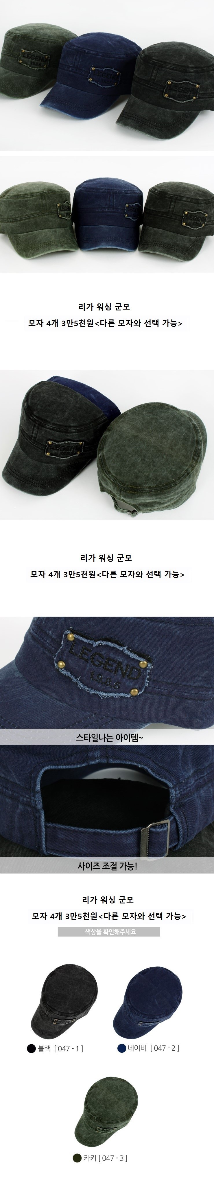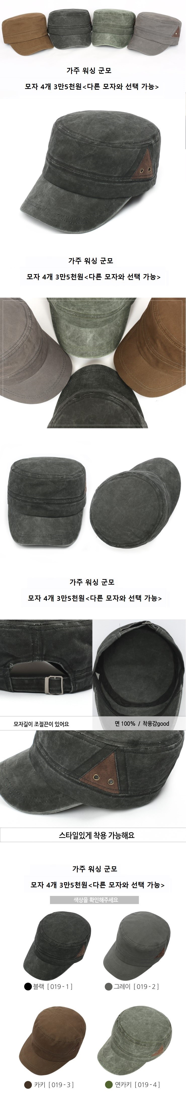 *** 가주 워싱군모 4개 <다른모자와 선택가능>
