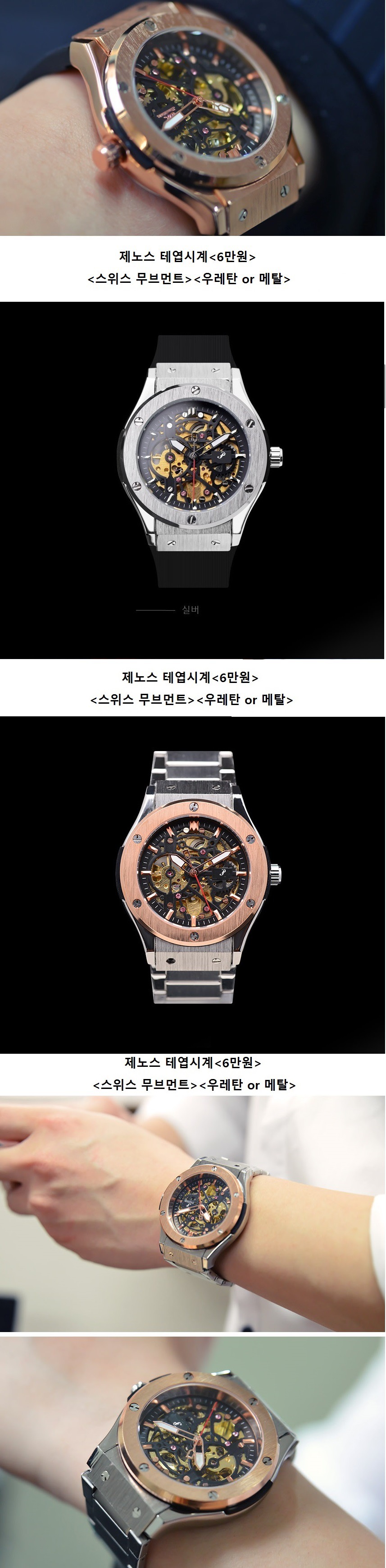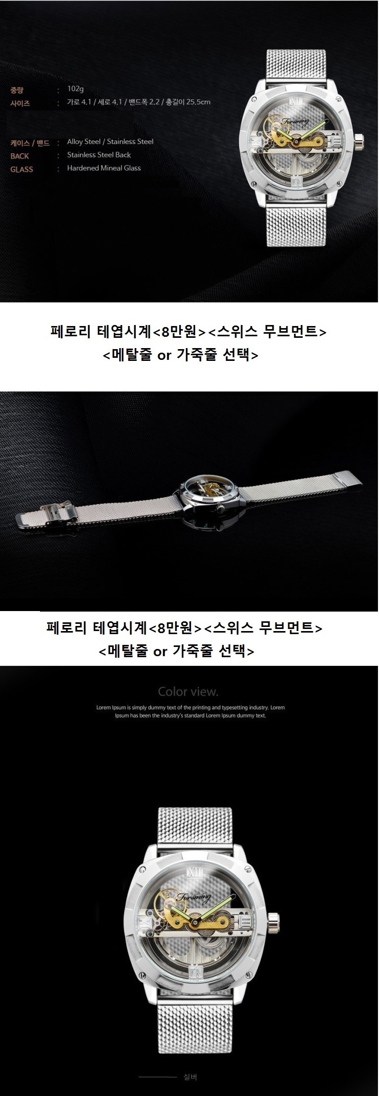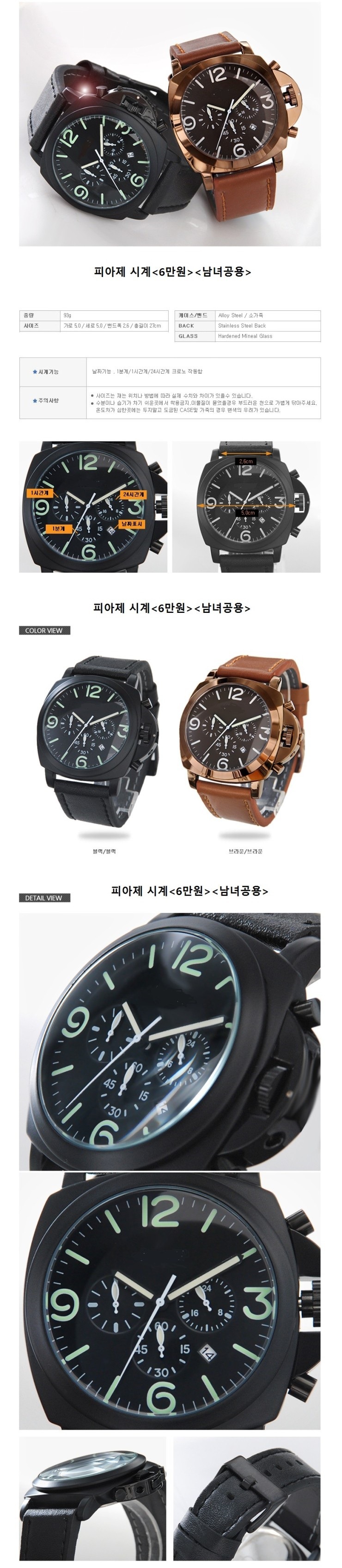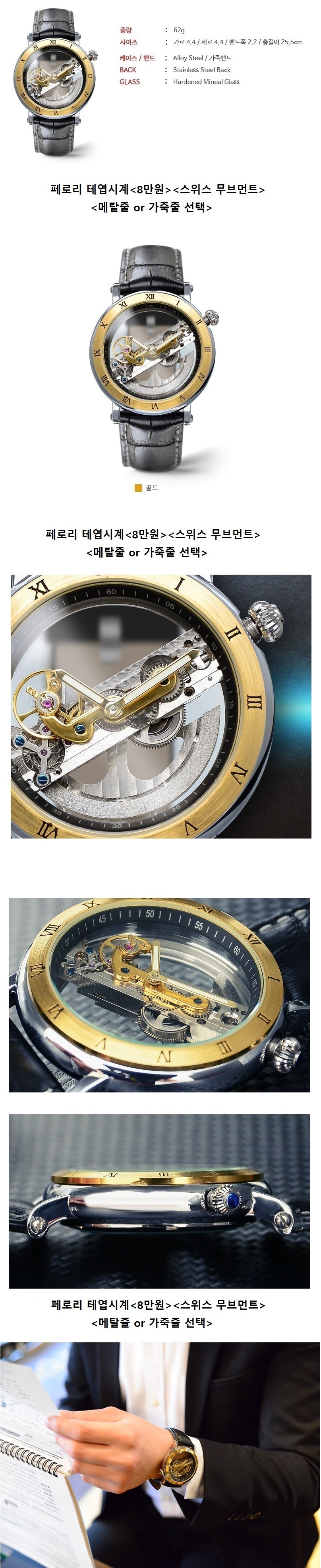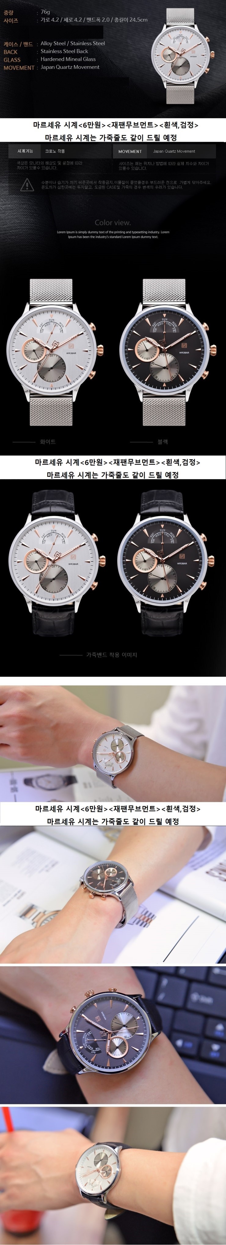 특징: 스위스 무브먼트,<가죽줄, 메탈줄>