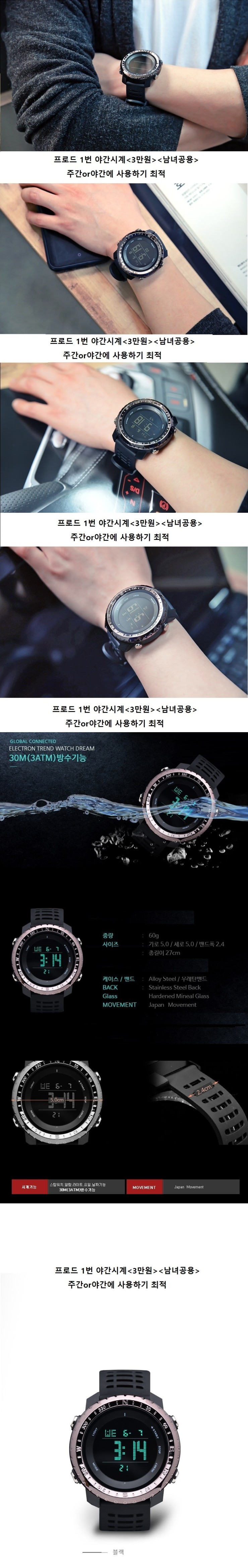 3기압 방수, 야간LED 사용