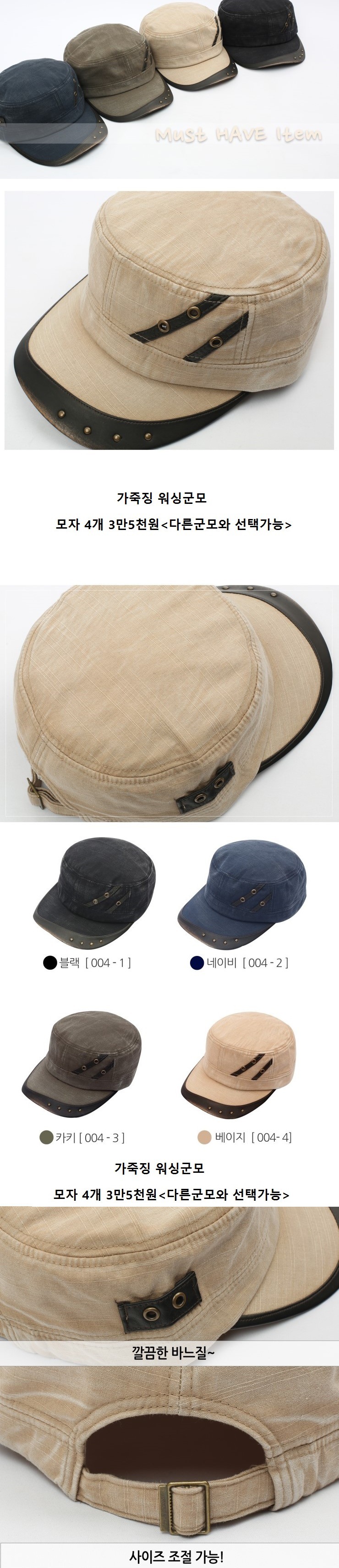 *** 가죽징 워싱군모 4개<다른모자와 선택가능>