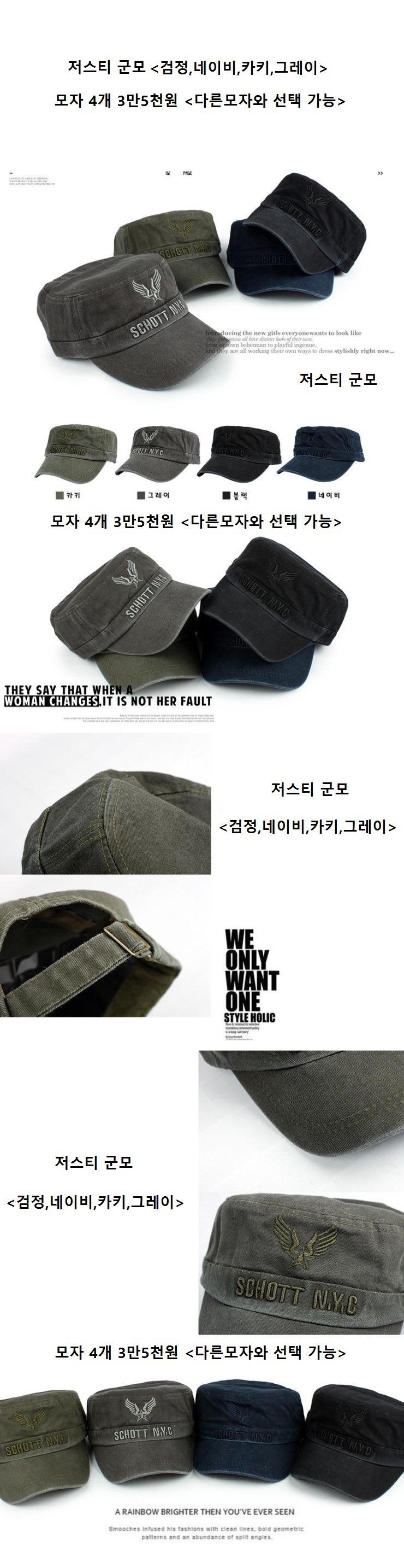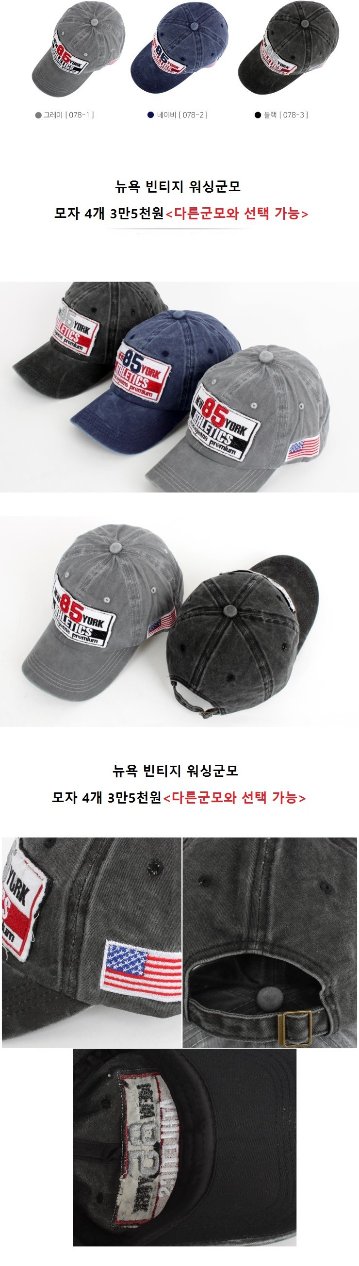 *** 뉴욕빈티지 워싱군모 4개<다른모자와 선택가능>