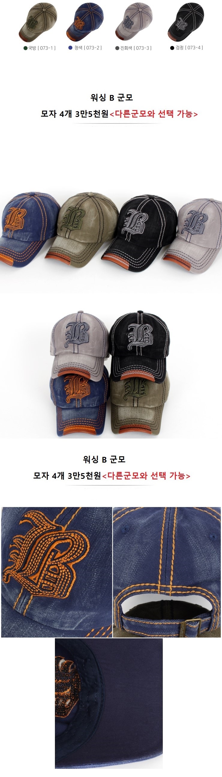 *** 워싱 B군모 4개 <다른모자와 선택가능>