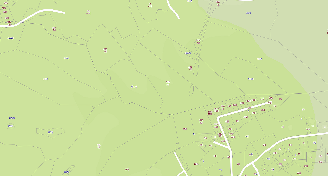 신촌리 방향으로 접해있는 토지(지적도상에 위 방향) 하천부지로개발 사업을