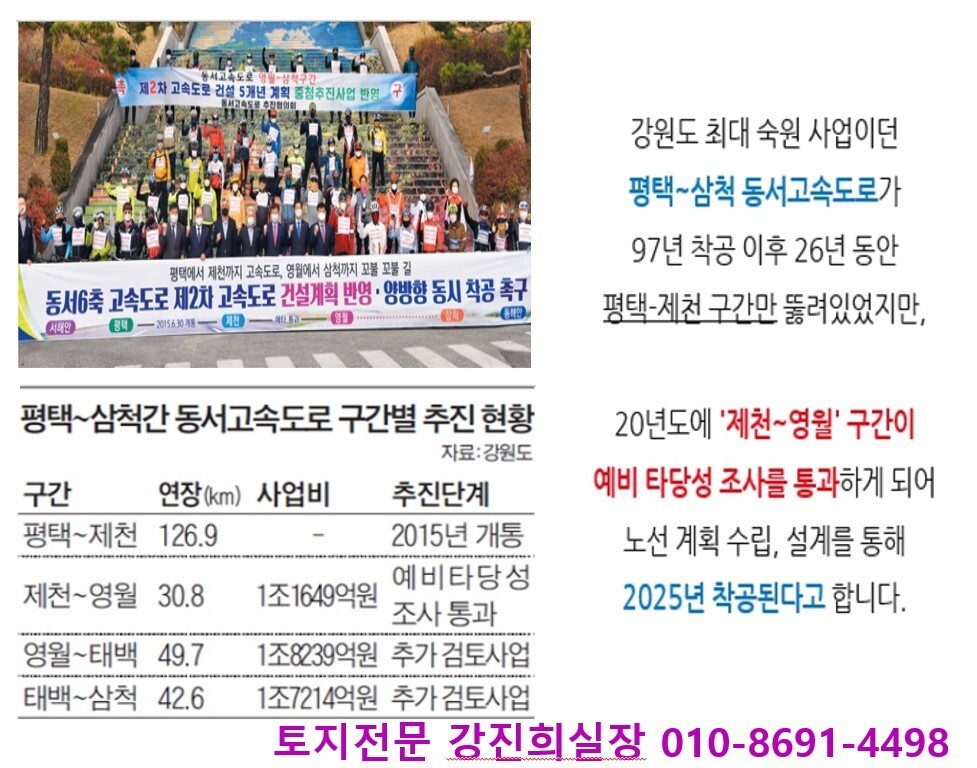 평택-삼척간 고속도로 추진으로 더욱 편한 교통망이 될거라 예상되는 지역에