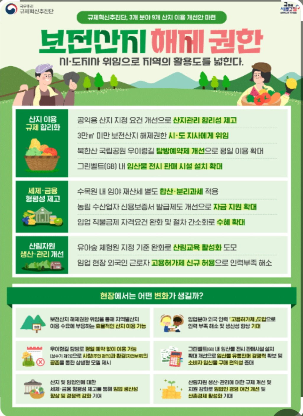 - 산지전용·일시사용제한지역 3,580ha 해제 등 규제개선 19건 추진