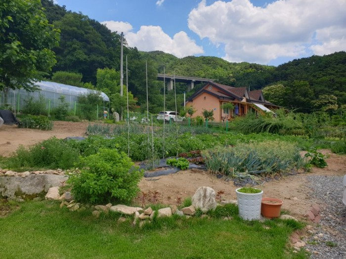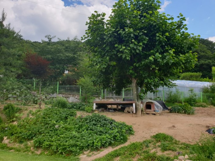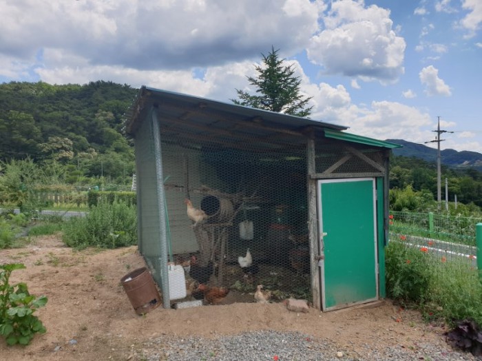 신선한 계란을 드시고 싶으신가 봐요~ 이렇게 텃밭 한쪽에는 닭장도 있구요~