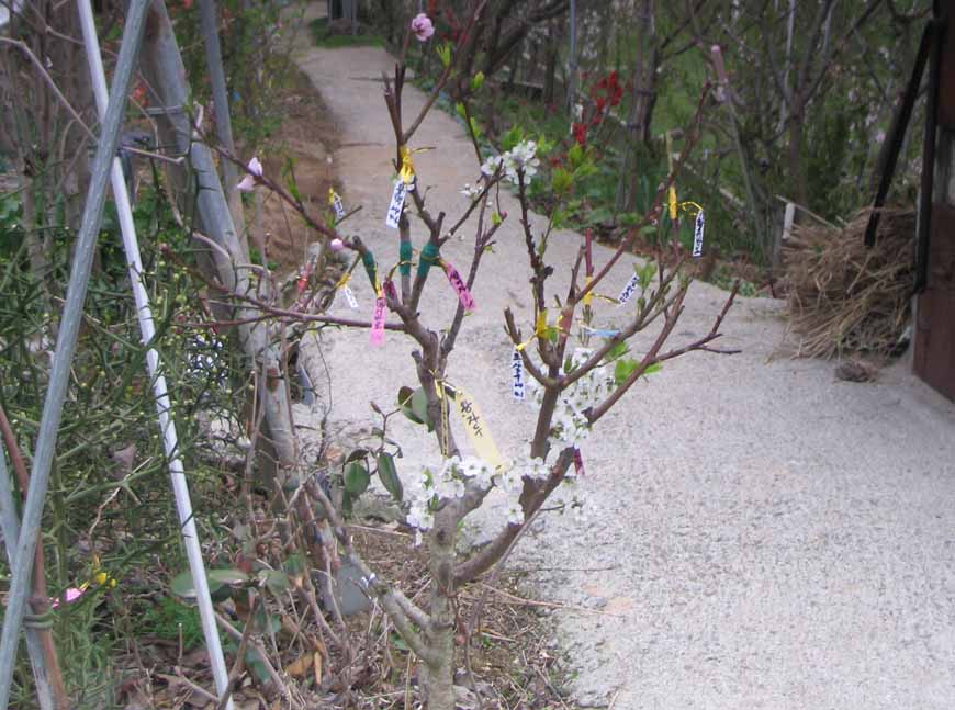 8종 복숭아 접목해서 살았으며 꽃망올 맺은것도 있슴
