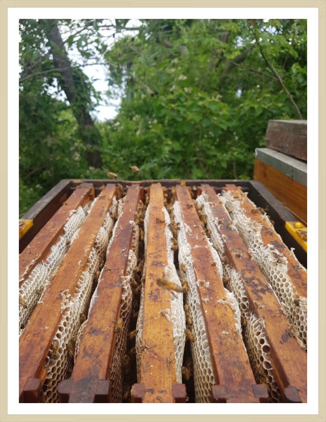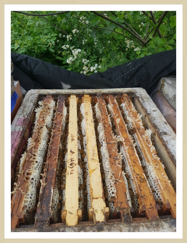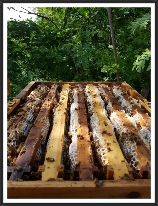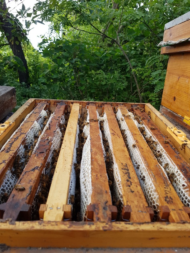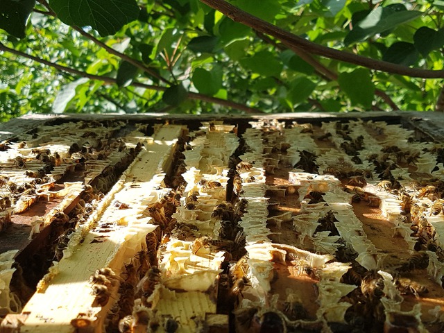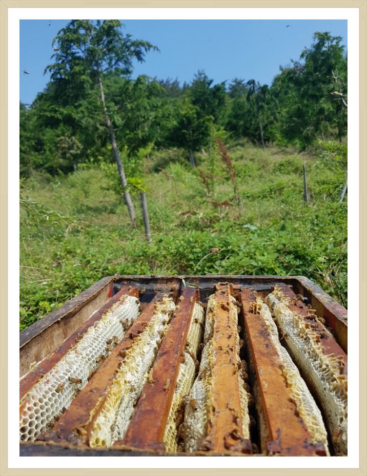 벌집이 11개들어간 벌통엔 8개로 줄여서 꿀이 숙성되도록 벌리는 일을 하였습니다.