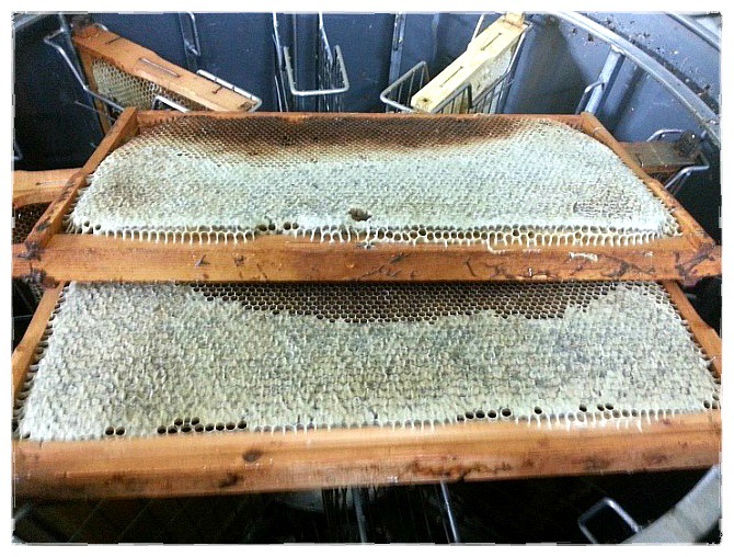 꿀이 식어 버리면 채밀이 어렵기 때문에 식지 않게 하여서 바로 채밀을 합니다.