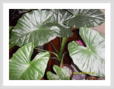 알로카시아 도라 익은꿀을 먹고 남거니를 물에타 주니 잎이 12개 나왔어요.
