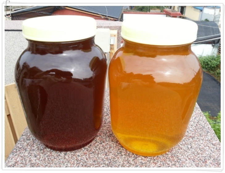 수확한 모듬은꽃 익은꿀 색상입니다.