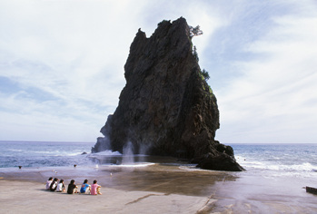 통구미 해변에 위치해 있는 거북바위는 여러마리의 거북이가 함께 있는 모양새를 하고 있다.