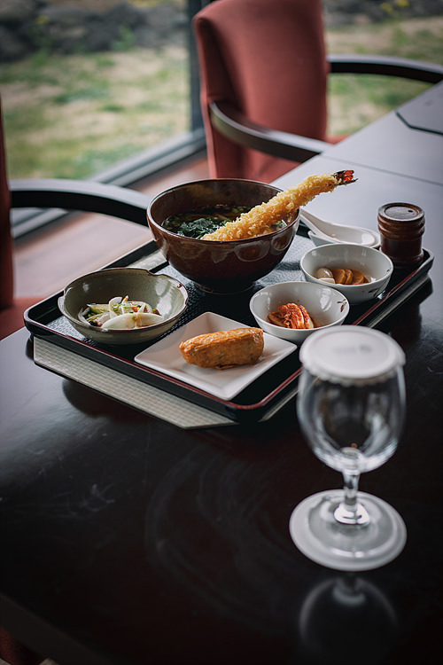 호텔의 유일한 레스토랑인 ‘포도’에서는 조식부터, 런치, 디너까지 즐길 수 있다. 이곳의 시그너처 메뉴는 왕새우튀김정식이다. 쫄깃한 면발이 살아있는 사누키 생면과 커다란 통새우 튀김의 조합은 미식가들 사이에서 유명하다.