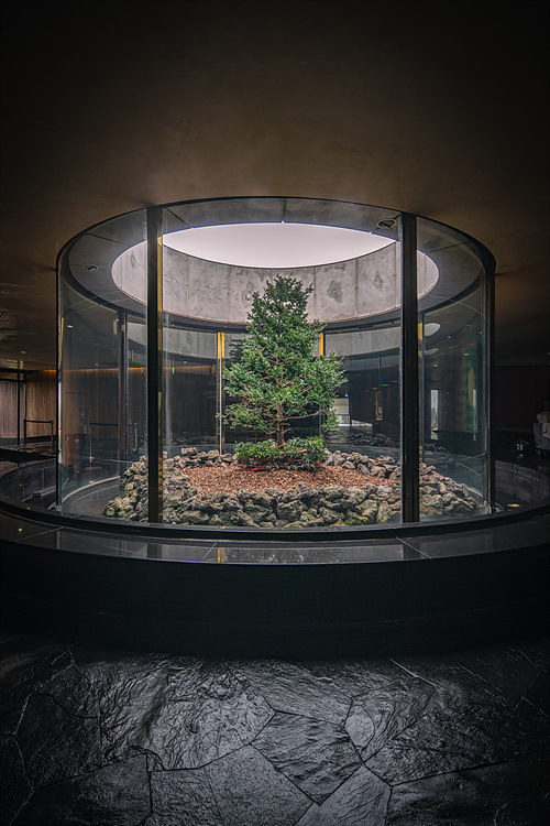 호텔 내부에서 가장 중앙에 위치한 케스케이드는 자연을 생각하는 포도호텔의 건축 정체성을 가장 잘 보여준다. ‘작은 폭포’를 의미하는 이름처럼 아래로는 물이 흐르고, 하늘을 향해 뚫려 있는 유리 기둥 속에는 유채꽃, 매화꽃 등 그 시즌에 맞는 식물을 심어 실내에서도 자연을 느낄 수 있게 만들었다.