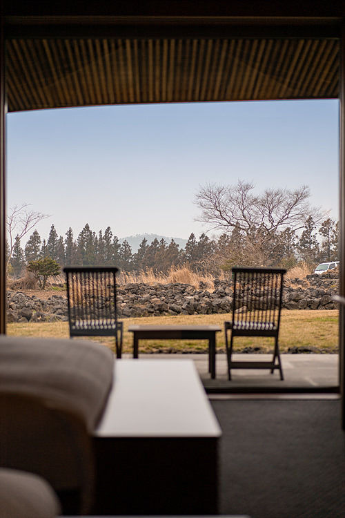 단층 구조인 호텔의 특성에 따라 26개의 전 객실은 모두 1층에 함께 위치해있고, 전반적으로 천장이 높은 것이 특징이다. 크게 산방상을 향해 있는 양실과 소담한 정원, 저 멀리로는 한라산이 보이는 뷰를 지닌 한실로 나눠져 있다.