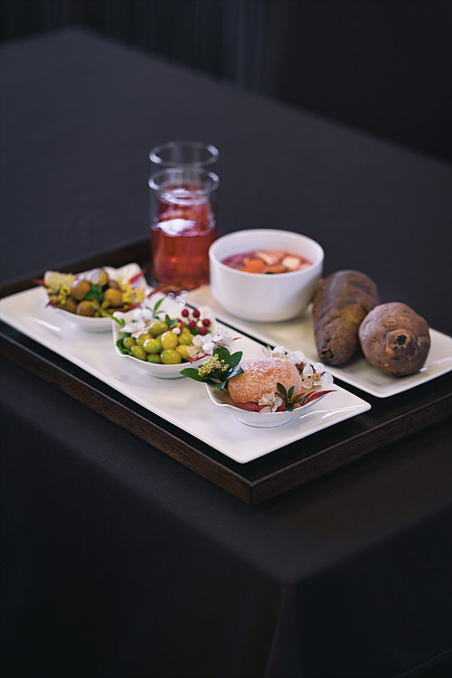 룸서비스로 군고구마, 동치미, 아이스 홍시 등 전통적인 다과로 차려진 한 상을 즐길 수 있다. 계절 불문 군고구마가 특히 인기라고. 가격은 2인 기준 15,000원이다.
