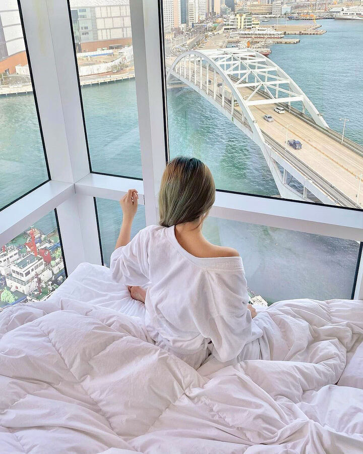 게다가 바다와 하늘, 잔잔하지만 다소 심심한 뷰가 아니라 남항대교, 영도대교, 부산대교, 부산항 대교까지 다른 호텔에서는 감상할 수 없는 하버뷰가 펼쳐진다는 점 또한 매력적입니다. 밤에는 더 아름다운데요. 대교 위를 오가는 차들의 불빛과 바다에 비친 조명, 고층 건물의 네온사인이 어우러져 한시도 눈을 뗄 수 없는 낭만적인 풍경을 그려냅니다.