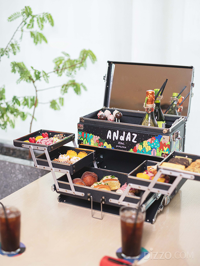 안다즈 서울 강남은 한강과 남산이 한눈에 들어오는 압구정에서의 달콤한 가을을 주제로 알록달록한 색감의 디저트 구성이 돋보이는 '안다즈 애프터눈티 세트'를 판매한다.메뉴는 독특한 패키지에 담아 드라이 아이스와 함께 제공되어 메뉴가 제공되는 방식부터 이색적인 경험을 선사한다. 패키지는 전예지 작가와의 협업을 통해 서울의 자연과 달콤한 여행를 주제로 세 가지 일러스트레이션이 그려져 있어, 다채로움을 더한다. 발로나 초콜릿으로 만든 롤리팝, 마스카포네 크림 밀푀유 등 7종의 달콤한 디저트, 핑거 푸드 3종, 모둠 쿠키 및 초콜릿 등 풍성하게 구성했으며, 차 또는 커피는 무제한으로 제공된다. 여기에 1 만원을 추가하면, 작은사이즈 와인(200 ml) 한병도 함께 즐길 수 있다. 매일 오후 1시부터 5시까지 이용할 수 있다.