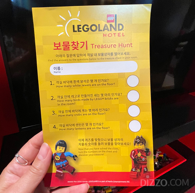 ▲ 레고호텔 객실에 비치돼 있는 보물 찾기 퀴즈