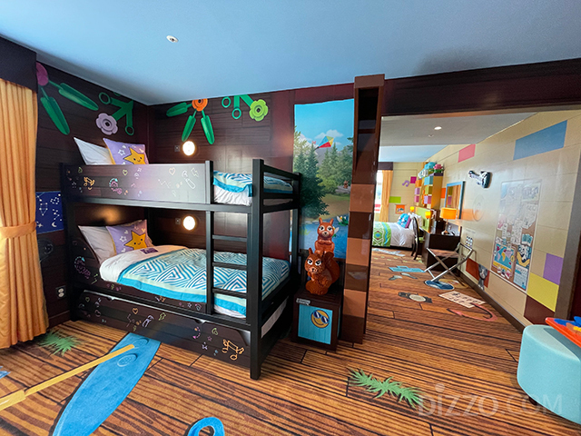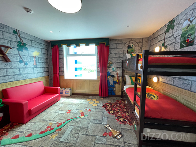 호텔은 지상 4층으로 이뤄져 있으며, 총 154개의 객실을 갖추고 있다. 객실은 프렌즈(12개), 닌자고(36개), 파이러츠(40개), 킹덤(66개) 등 인기 레고 시리즈 4개를 테마로 구성되며, 각 크기와 위치에 따라 프리미엄, 스위트, 딜럭스 스위트 등의 카테고리로 나뉜다. 특히 객실에는 공용 침실 외에 2층 침대가 있는 별도 공간이 있어, 2층 침대를 선호하는 어린이들에게 인기를 끌 것으로 보인다.
