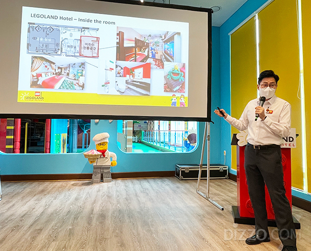 마지막으로 호텔 소개를 맡은 레고랜드 호텔 송주용 총지배인은 "레고랜드 호텔의 메인 타깃은 만 2세부터 12세의 아동을 동반한 가족 여행객이다. 호텔 전역은 레고 테마로 구성되었으며 전 객실 키즈 특화로 꾸몄다"라며 "레고랜드 호텔은 객실뿐만 아니라 모든 부대시설이 콘텐츠화 되어 있다. 투숙객들이 잠만 자고 가기보다는 호텔에서 즐기는 콘텐츠들이 즐거운 경험이 될 수 있도록 시설들을 마련했다"고 말했다.