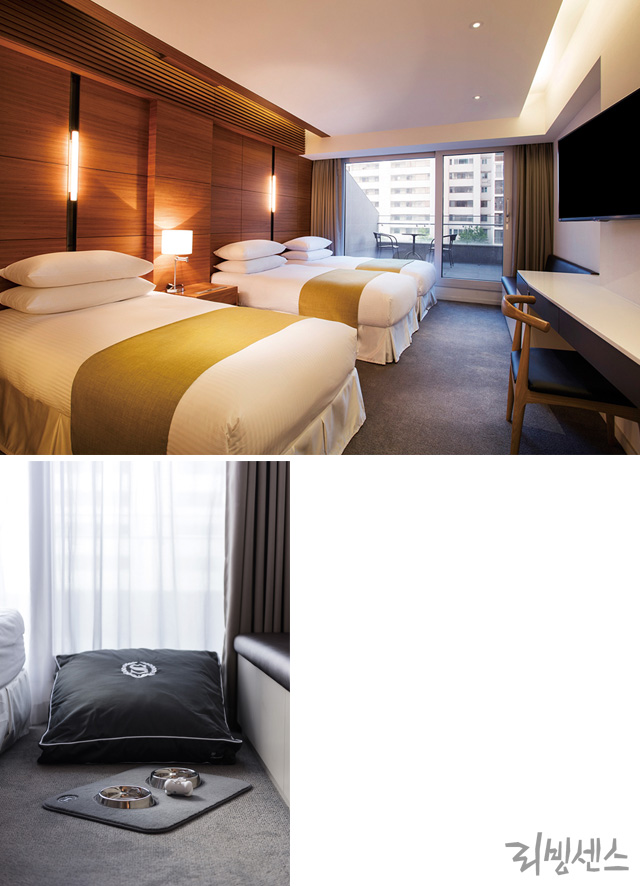 편안한 서비스로 반려견과의 소중한 시간을 보내고 싶다면 둘러봐야 할 곳. 호텔에서 판매하는 ‘러브 댓 도그(Love That Dog)ʼ는 반려견 전용 침대, 음식과 물을 담을 수 있는 그릇, 매트 등이 포함된 패키지. 반려견과의 시간을 방해받지 않기 위해, 반려견과 객실에 함께 있음을 알리는 도어놉을 설치할 수 있다. 반려견과 함께한다면 테라스 룸도 이용할 수 있다. 10kg 미만의 반려견만 입장 가능하고, 호텔 내 공공장소에서는 반드시 케이지를 사용해야 한다. 매너 벨트 착용도 필수다.