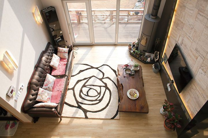 건축주 P씨는 “거실이 오픈 천장 구조이고 전면 창을 넓게 내다 보니 벽면이 넓어져 아트월을 예술적으로 표현한 것이다”면서, “천연 대리석이라 미감뿐만 아니라 습도도 조절하기에 집 안이 쾌적하다”고 말한다.